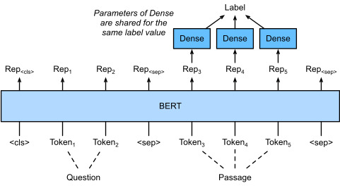 As another token-level application, question answering reflects capabilities of reading comprehension. For example, the Stanford Question Answering Dataset (SQuAD v1.1) consists of reading passages and questions, where the answer to every question is just a segment of text (text span) from the passage that the question is about (Rajpurkar et al., 2016). To explain, consider a passage “Some experts report that a mask’s efficacy is inconclusive. However, mask makers insist that their products, such as N95 respirator masks, can guard against the virus.” and a question “Who say that N95 respirator masks can guard against the virus?”. The answer should be the text span “mask makers” in the passage. Thus, the goal in SQuAD v1.1 is to predict the start and end of the text span in the passage given a pair of question and passage.