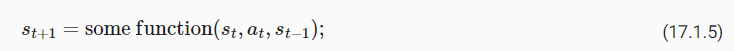 우리의 경우 "some function"은 뉴턴의 운동 법칙이 될 것입니다. 이는 단순히 st와 at에 의존하는 전환 함수와는 상당히 다릅니다.