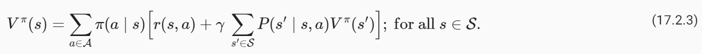 An important thing to notice here is that the above identity holds for all states s∈S because we can think of any trajectory that begins at that state and break down the trajectory into two stages.