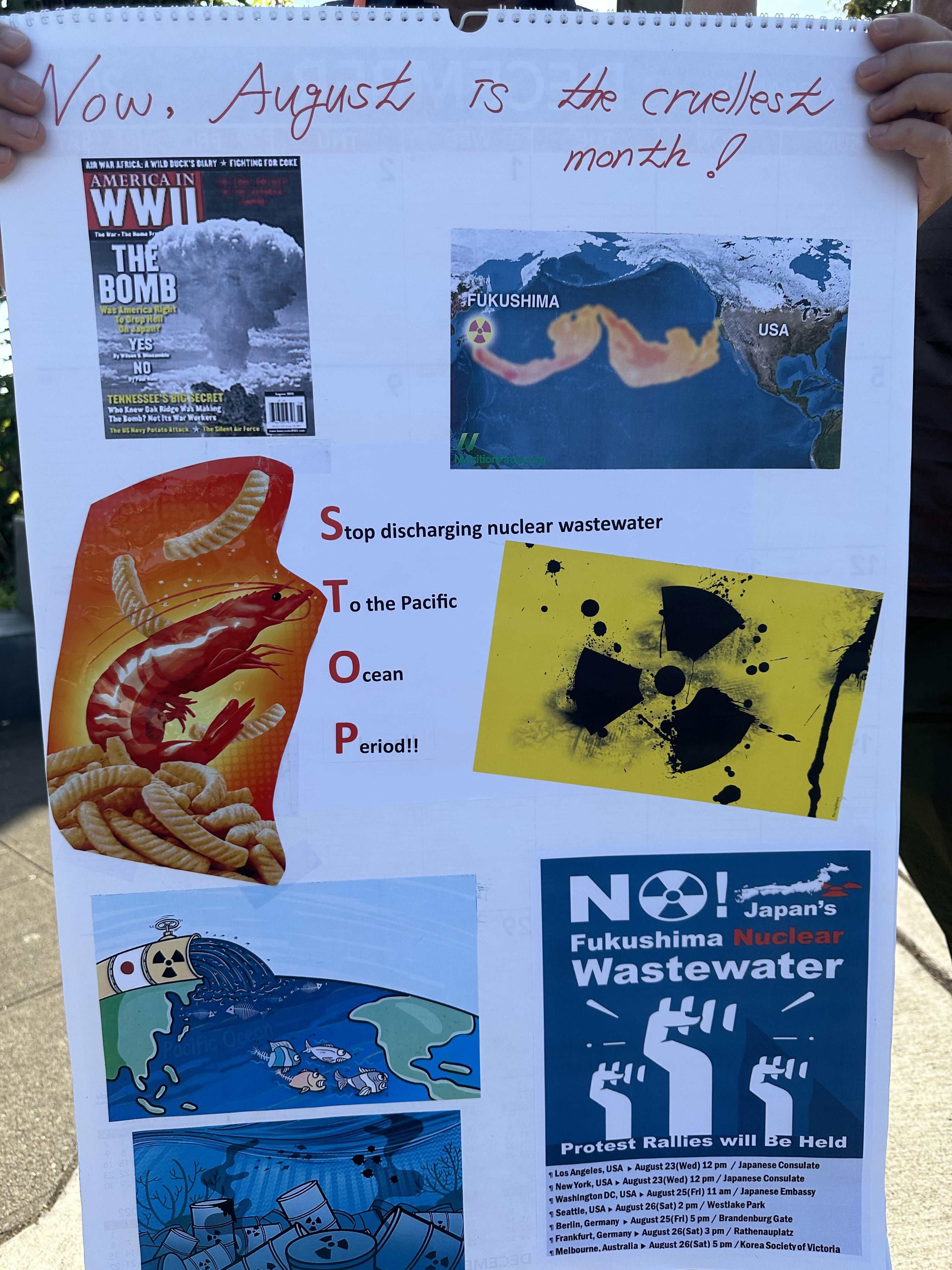 지난 주말이나 9월 16일 Federal Way 에서는 근처에 사는 30여명의 한인들이 후쿠시마 핵 오염수 방류 중단을 요구하는 시위를 했다.