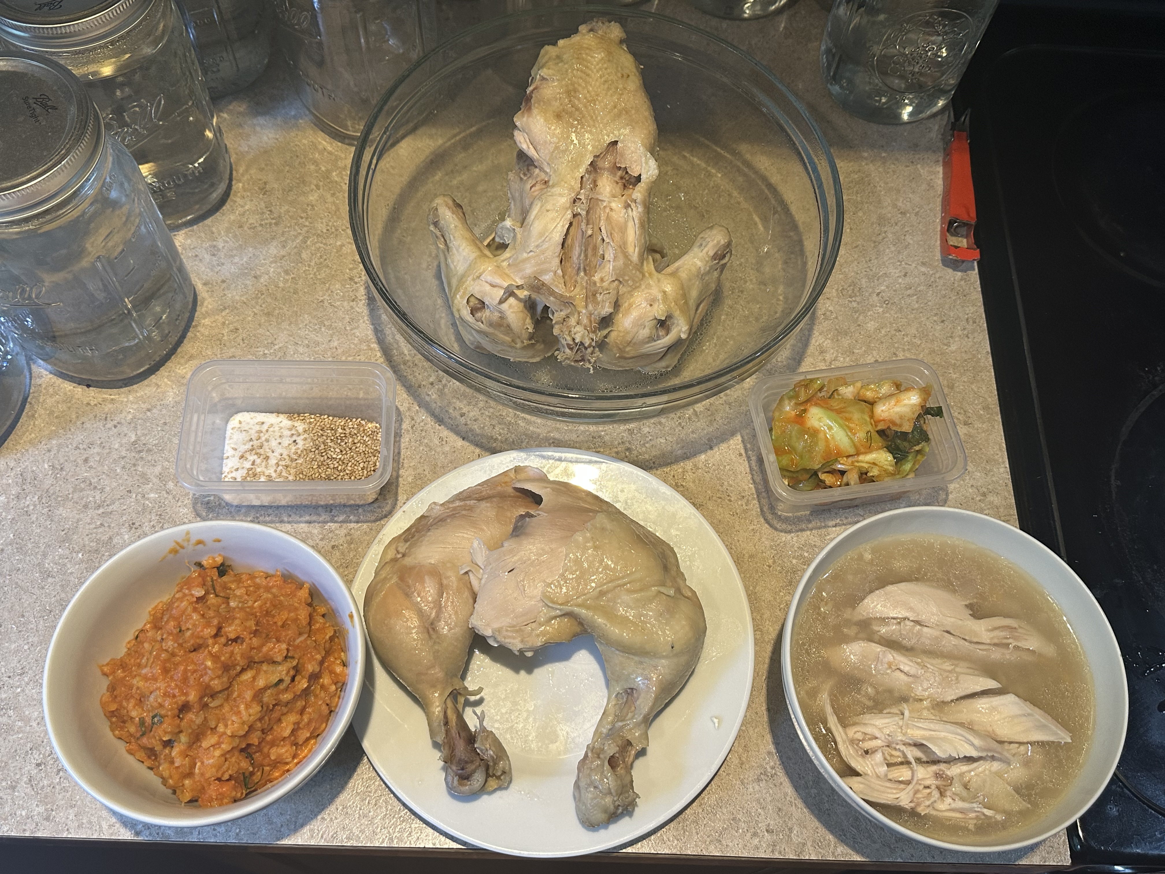 모처럼 큰 부엌일을 하는 김에 냉동고에 있던 닭한마리도 처리하기로 했다.