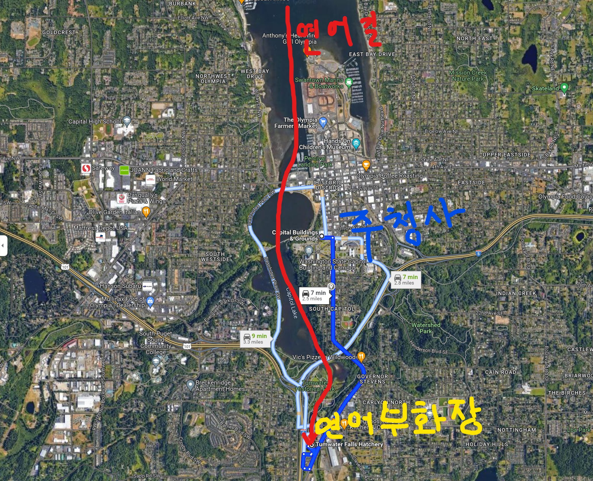 내가 사는 올림피아 시는 워싱턴 주의 주도 입니다. 워싱턴 주는 시애틀이 있는 주이죠. 시애틀은 올림피아에서 1시간 거리에 있습니다.