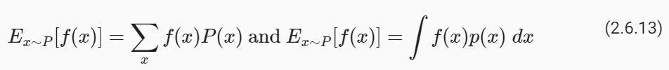 마찬가지로 밀도의 경우 E[X]=∫xdp(x)를 얻습니다. 때때로 우리는 x의 어떤 함수의 기대값에 관심이 있습니다. 우리는 이러한 기대치를 다음과 같이 계산할 수 있습니다.