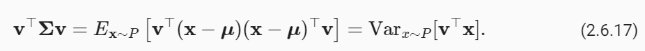 This matrix ∑ is referred to as the covariance matrix. An easy way to see its effect is to consider some vector v of the same size as x. It follows that