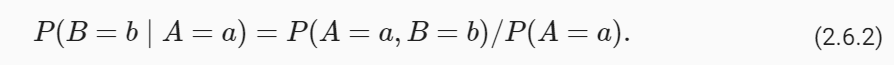 Note that ∑aP(A=a∣B)=1 also allows us to marginalize over random variables. That is, we can drop variables from a joint distribution such as P(A,B). After all, we have that Independence is another fundamentally important concept that forms the backbone of many important ideas in statistics.