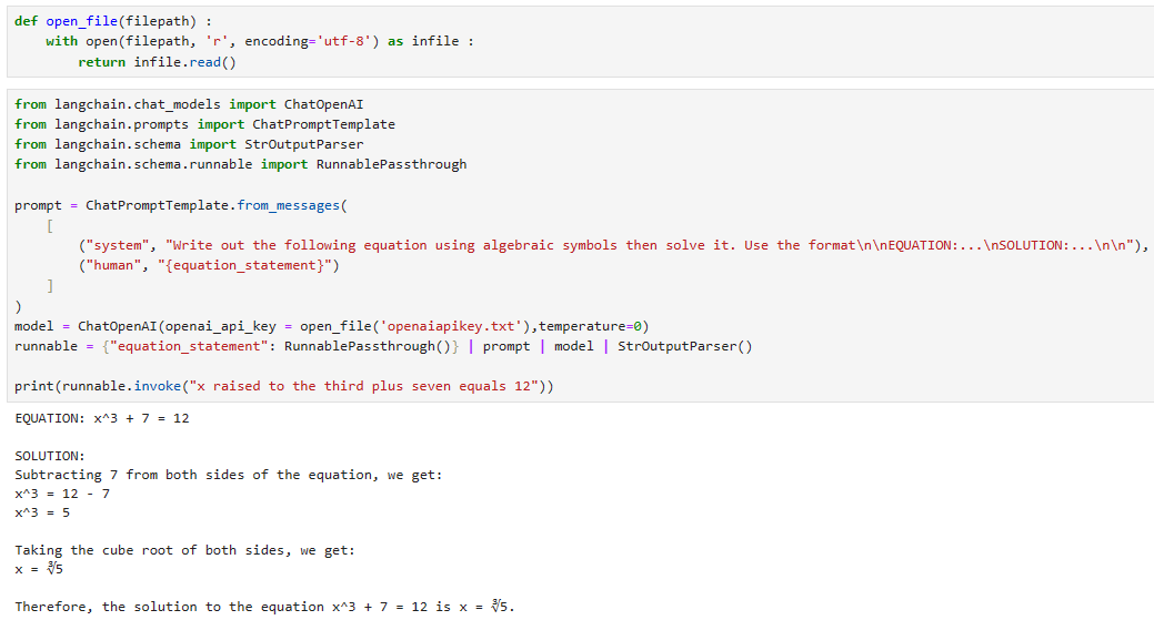 runnable = {"equation_statement": RunnablePassthrough()} | prompt | model | StrOutputParser()