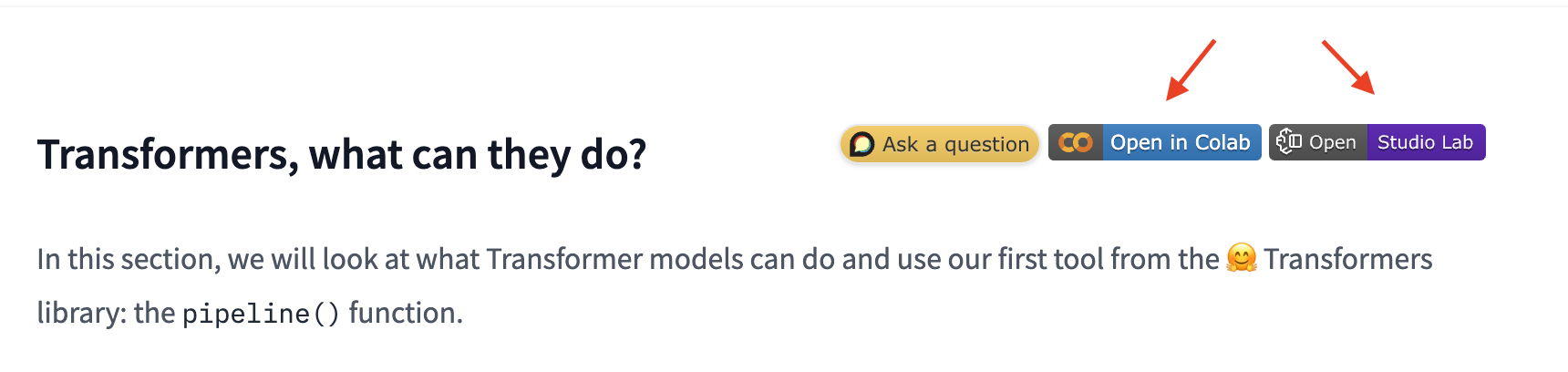 - Where can I get the code for the course? For each section, click on the banner at the top of the page to run the code in either Google Colab or Amazon SageMaker Studio Lab: