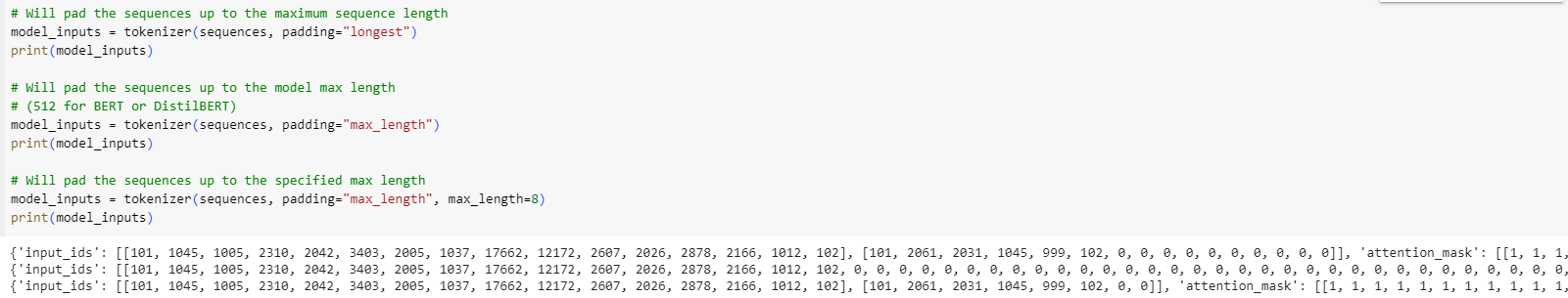 model_inputs = tokenizer(sequences, padding="max_length", max_length=8)