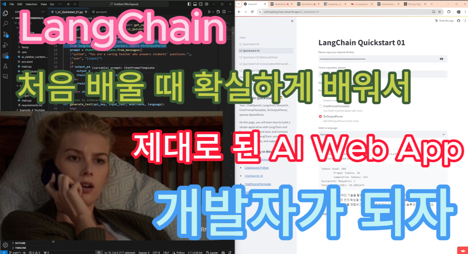 AI Web App 개발자가 되기 위해서 배워야할 수 많은 것들 중에 랭체인 (LangChain) 은 가장 먼저 최 우선으로 배워야 할 기술일 겁니다.
