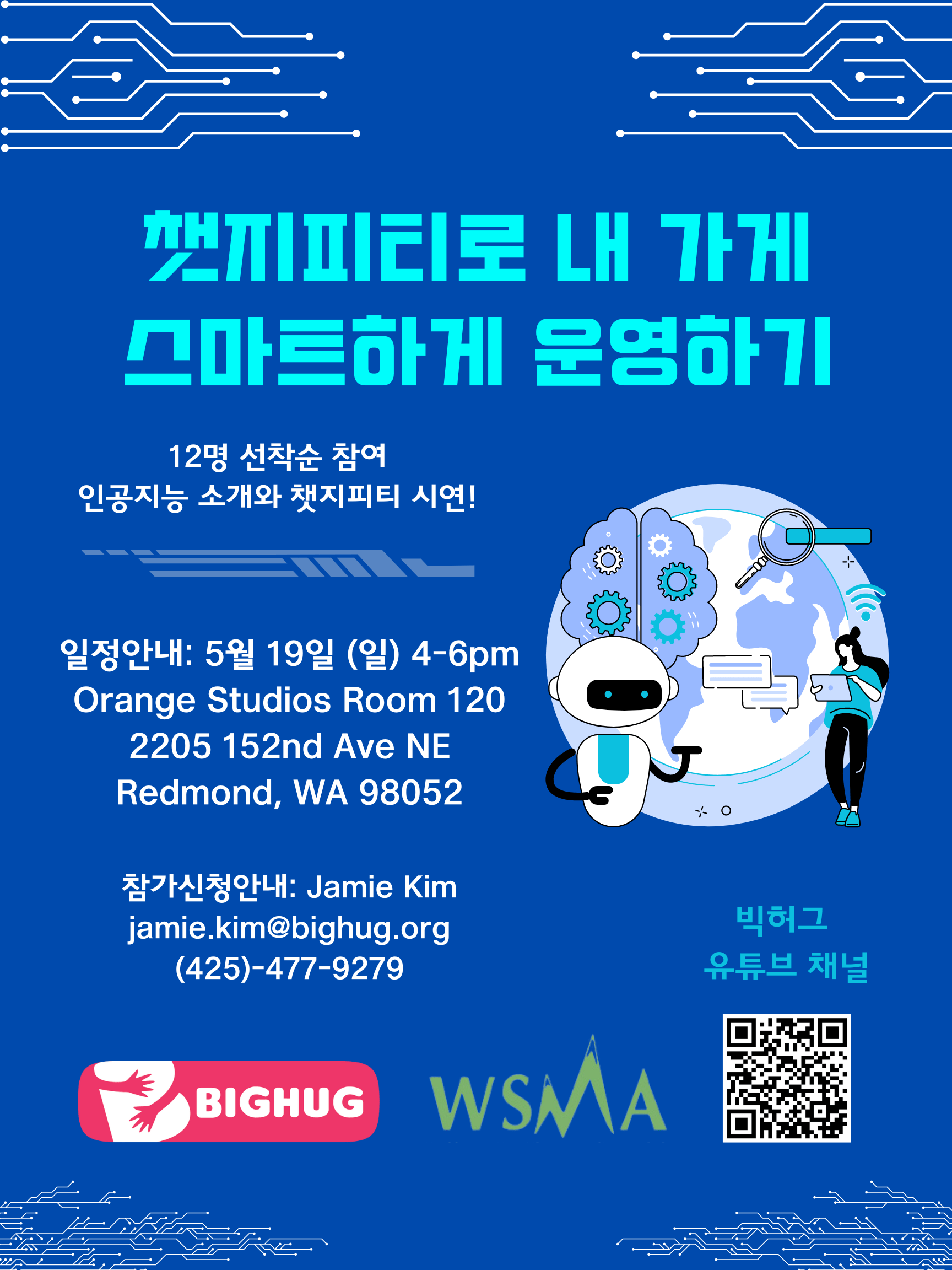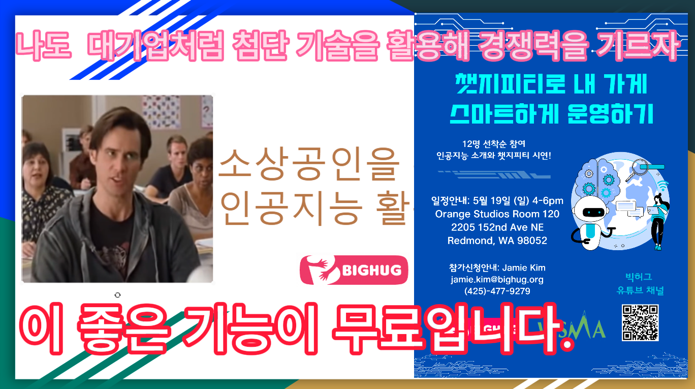시애틀 지역을 기반으로 활동하고 있는 한인 NGO 단체인 BIGHUG에서 이 지역 소상공인들을 위한 AI 세미나를 마련했습니다.