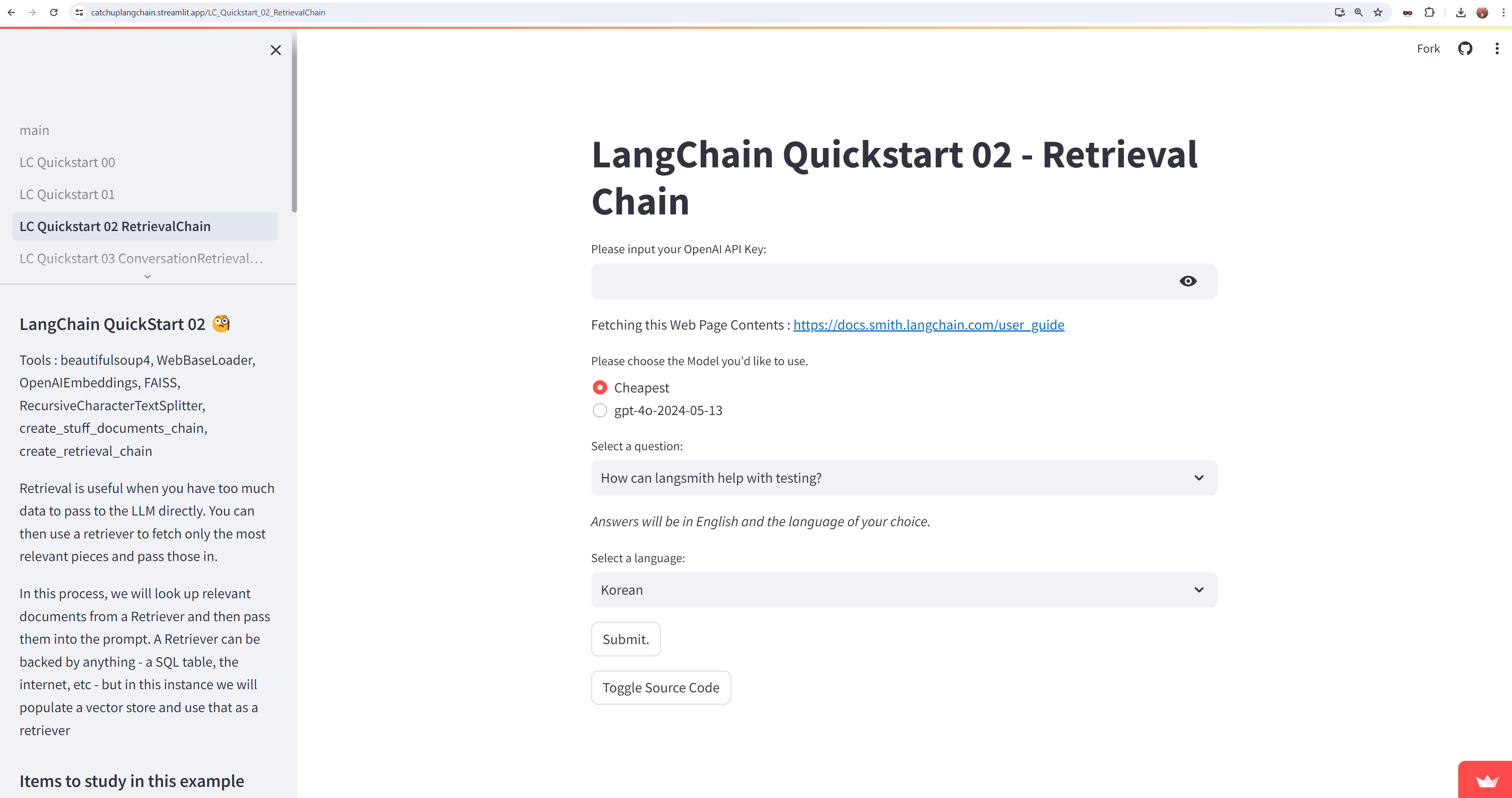 LangChain (랭체인)의 Retrieval Chain을 사용해서 구현한 저의 AI Web App 소스코드를 같이 분석하면서 공부해 봅시다.