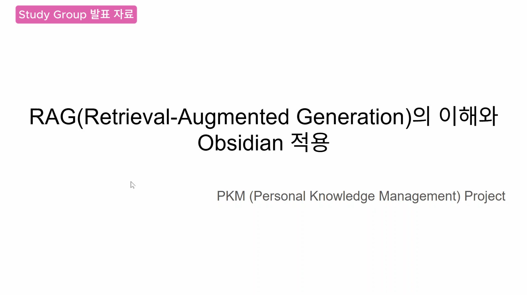 | Study Group 발표 자료 – Obsidian과 RAG 연동 방법 리서치 결과 발표 – PKM Project | My AI 2nd Brain 🧠 (1) | 2025.07.02 |