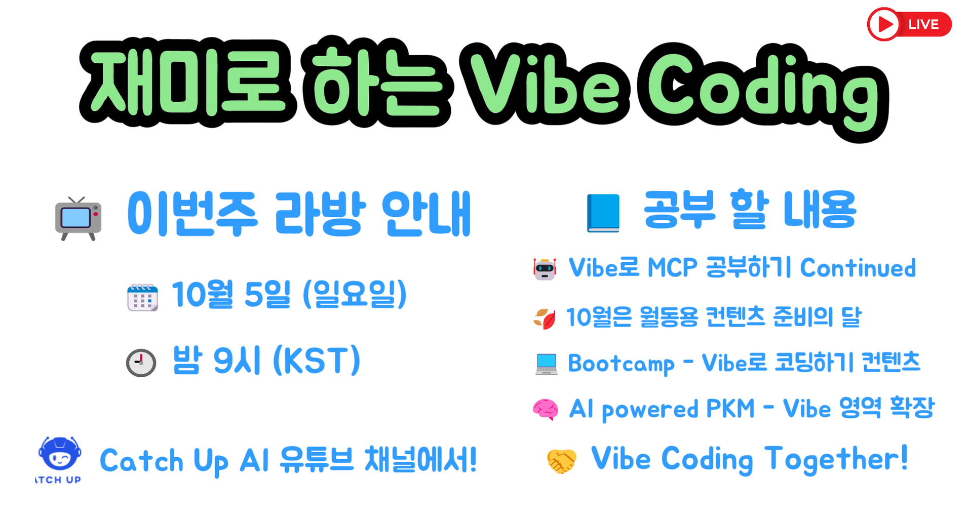 🚀 이번 주 Vibe Coding 라이브 방송 안내