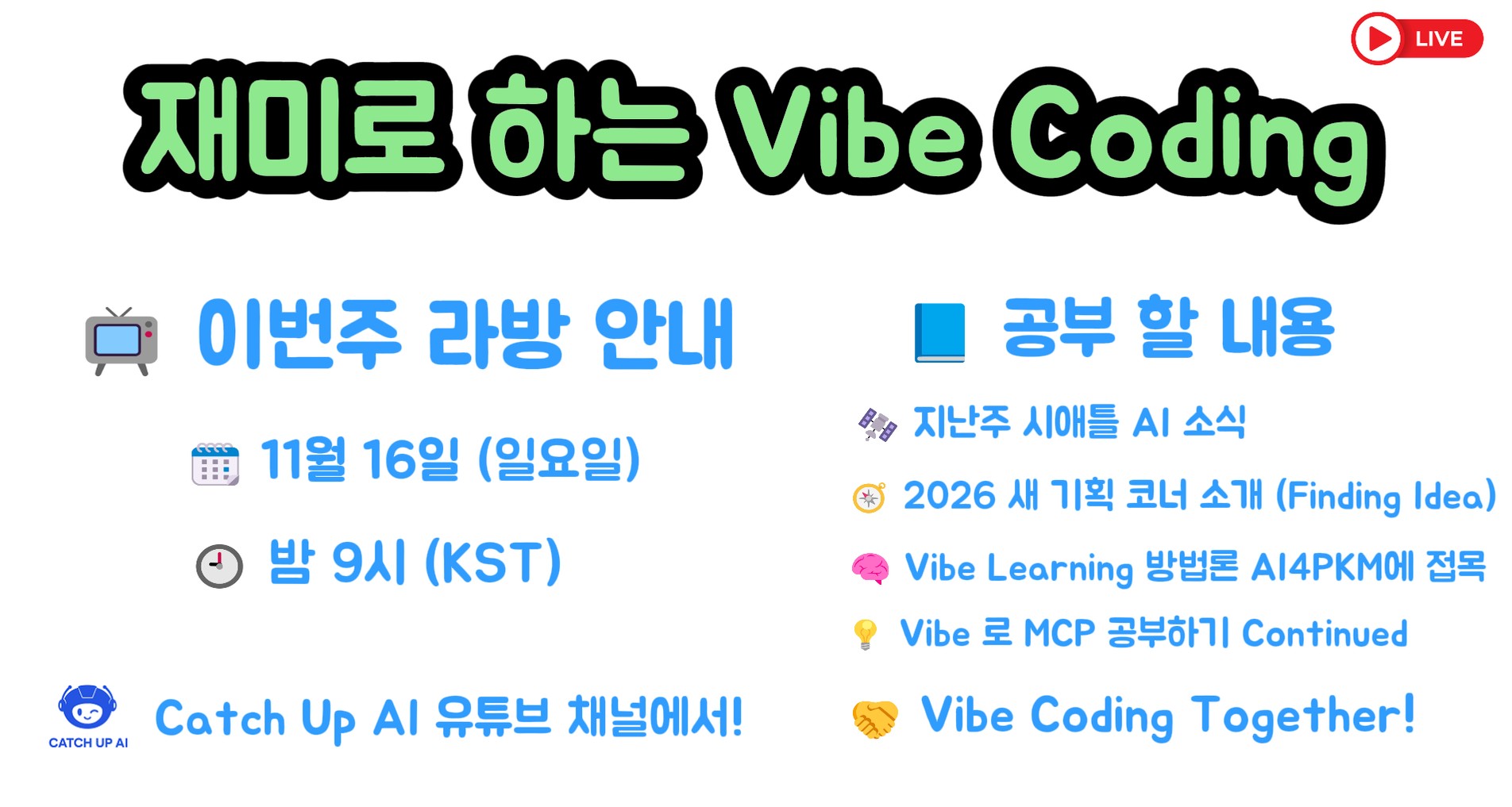 🚀 이번 주 Vibe Coding 라이브 방송 안내