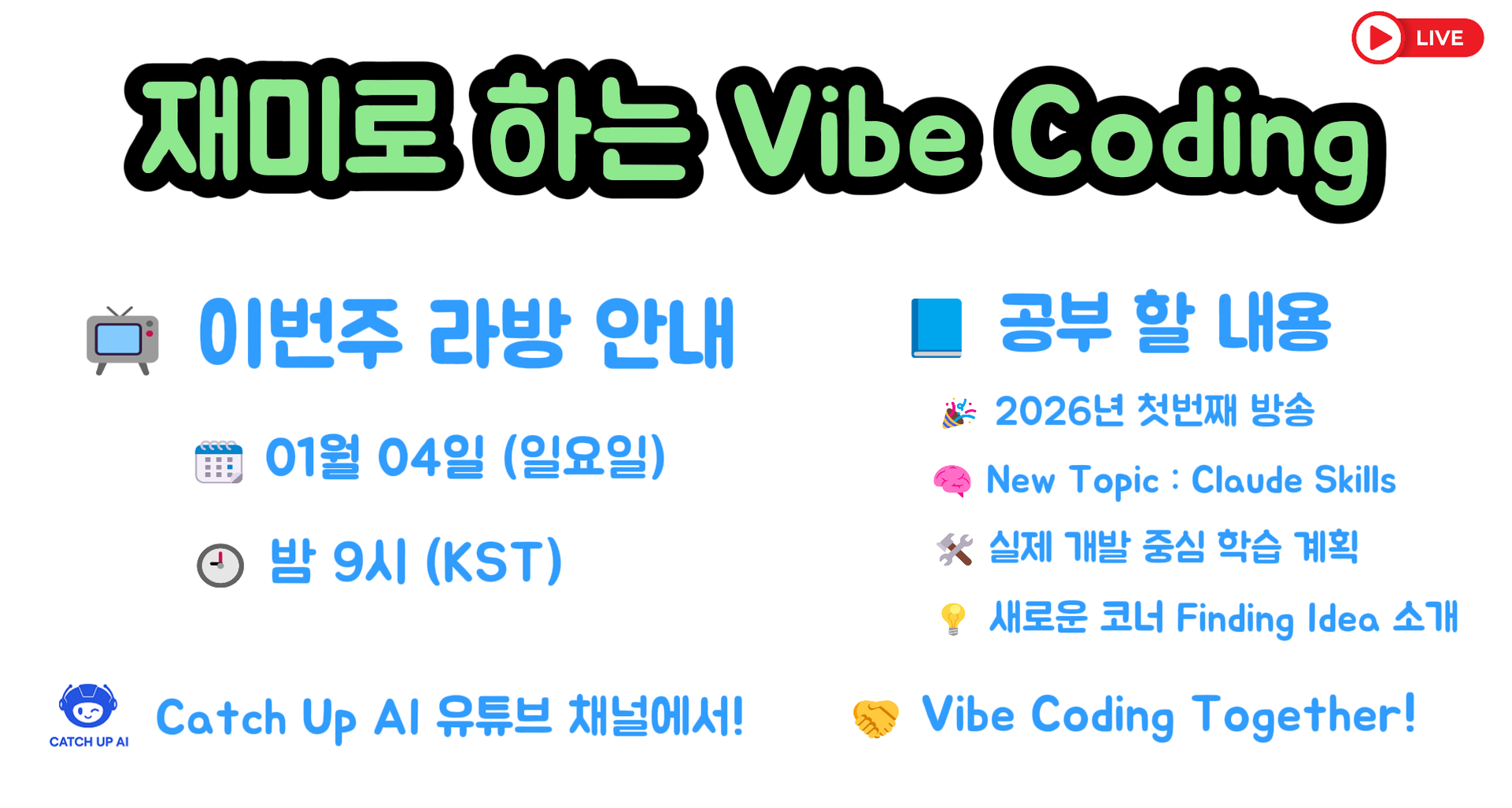 🚀 이번 주 Vibe Coding 라이브 방송 안내