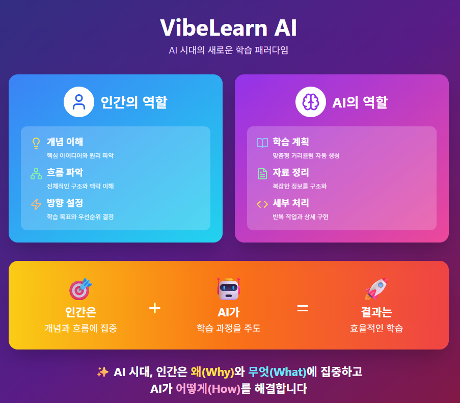 지금은 누구나 사용할 수 있는 VibeLearn AI라는 시스템이 되었습니다.