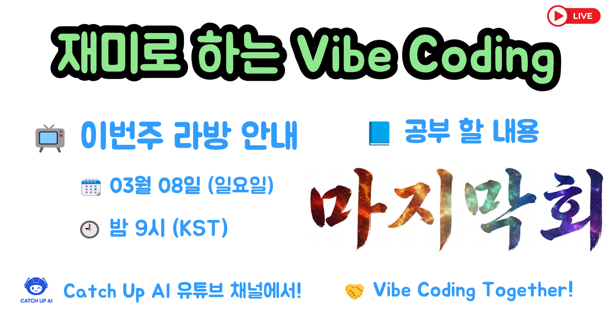 🚀 이번 주 Vibe Coding 라방 안내 (마지막회)