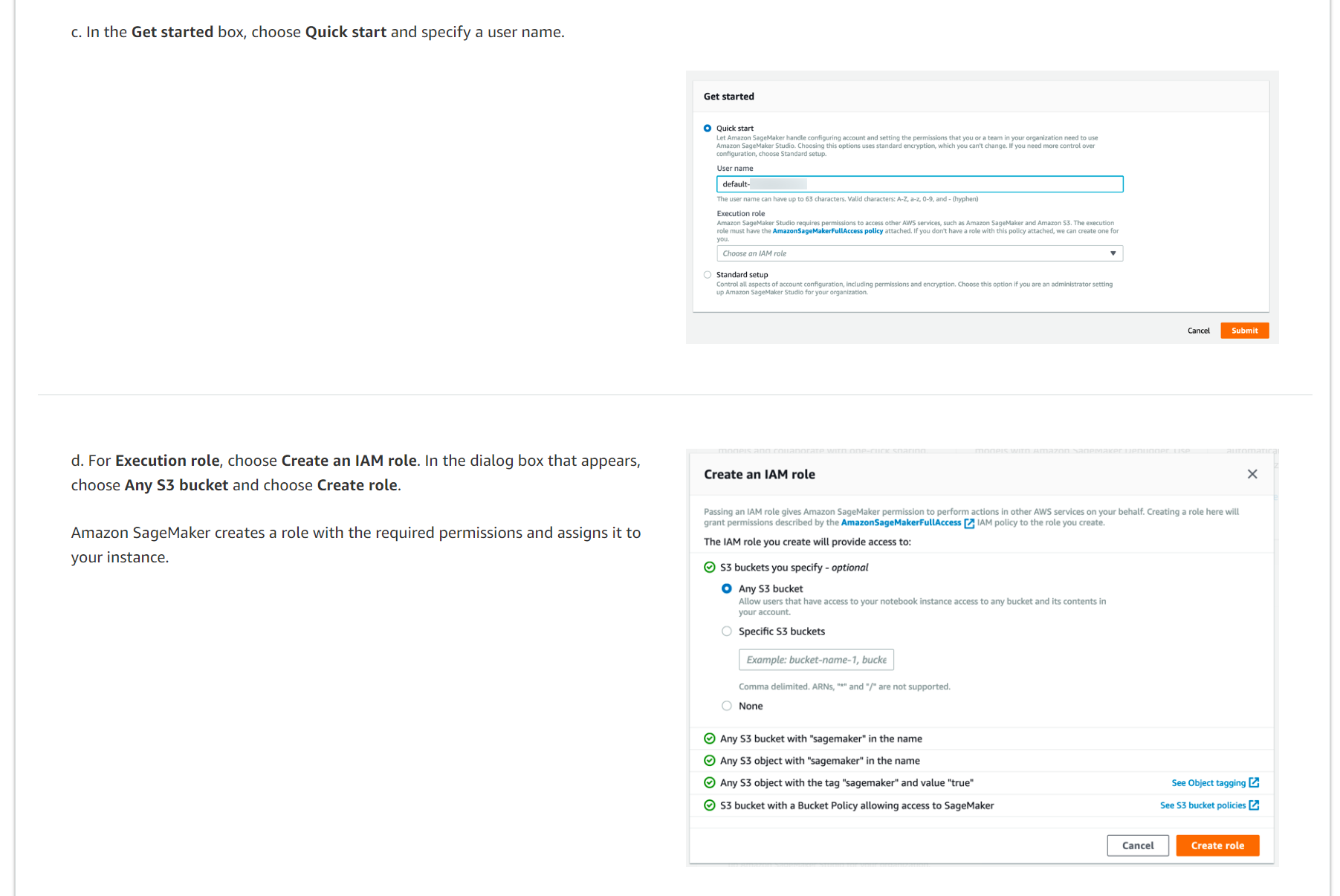 Amazon SageMaker는 필요한 권한이 있는 역할을 생성하고 이를 인스턴스에 할당합니다.