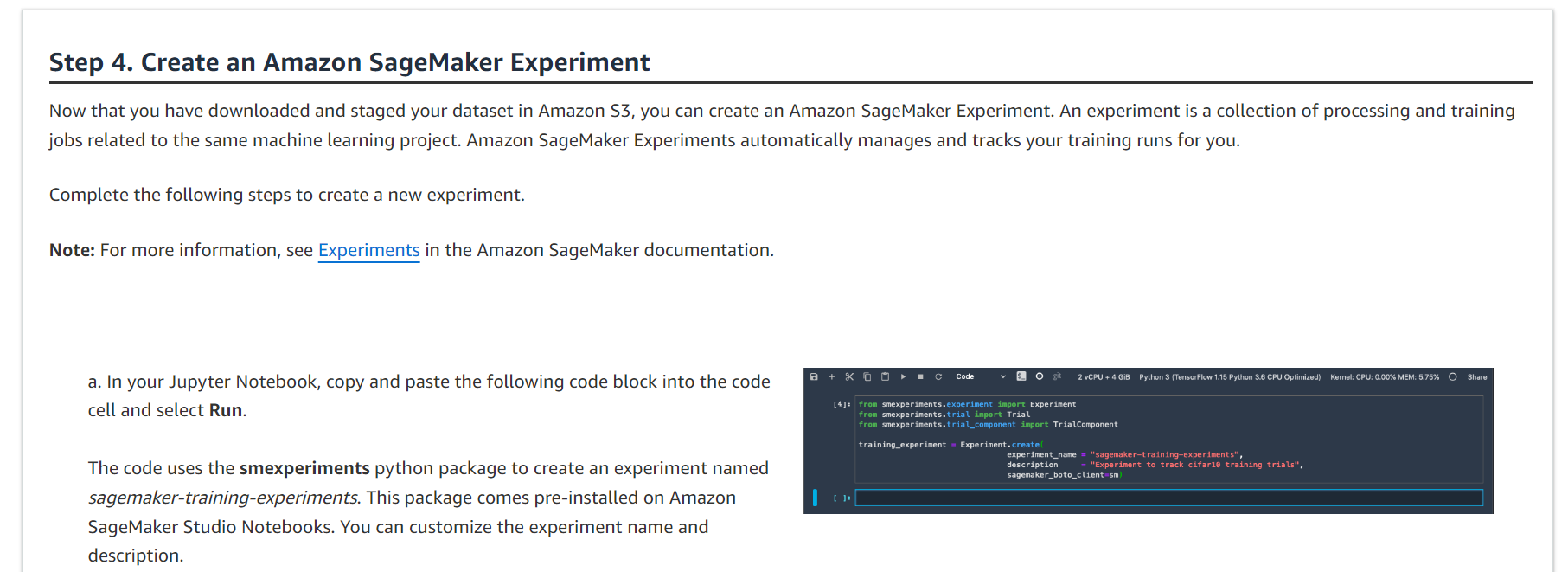 참고: 자세한 내용은 Amazon SageMaker 설명서의 실험을 참조하십시오.