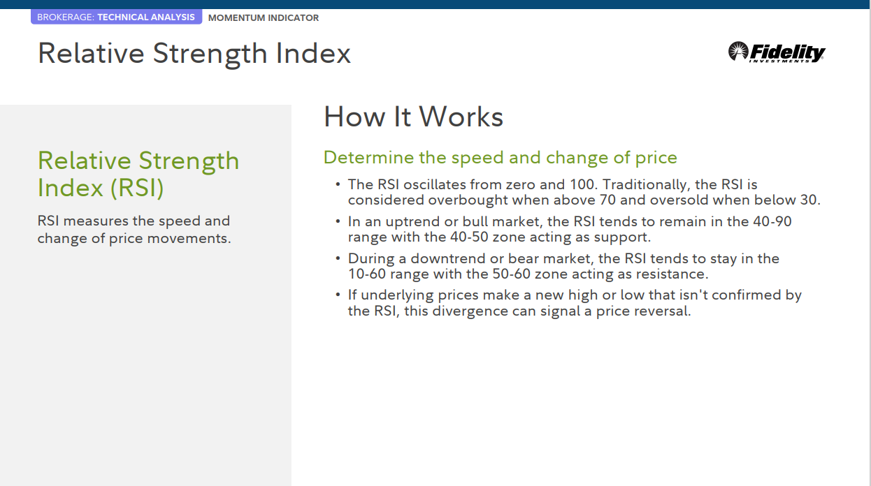 • 상승 추세 또는 강세장에서 RSI는 40-50 영역이 지지 역할을 하면서 40-90 범위에 머무르는 경향이 있습니다.