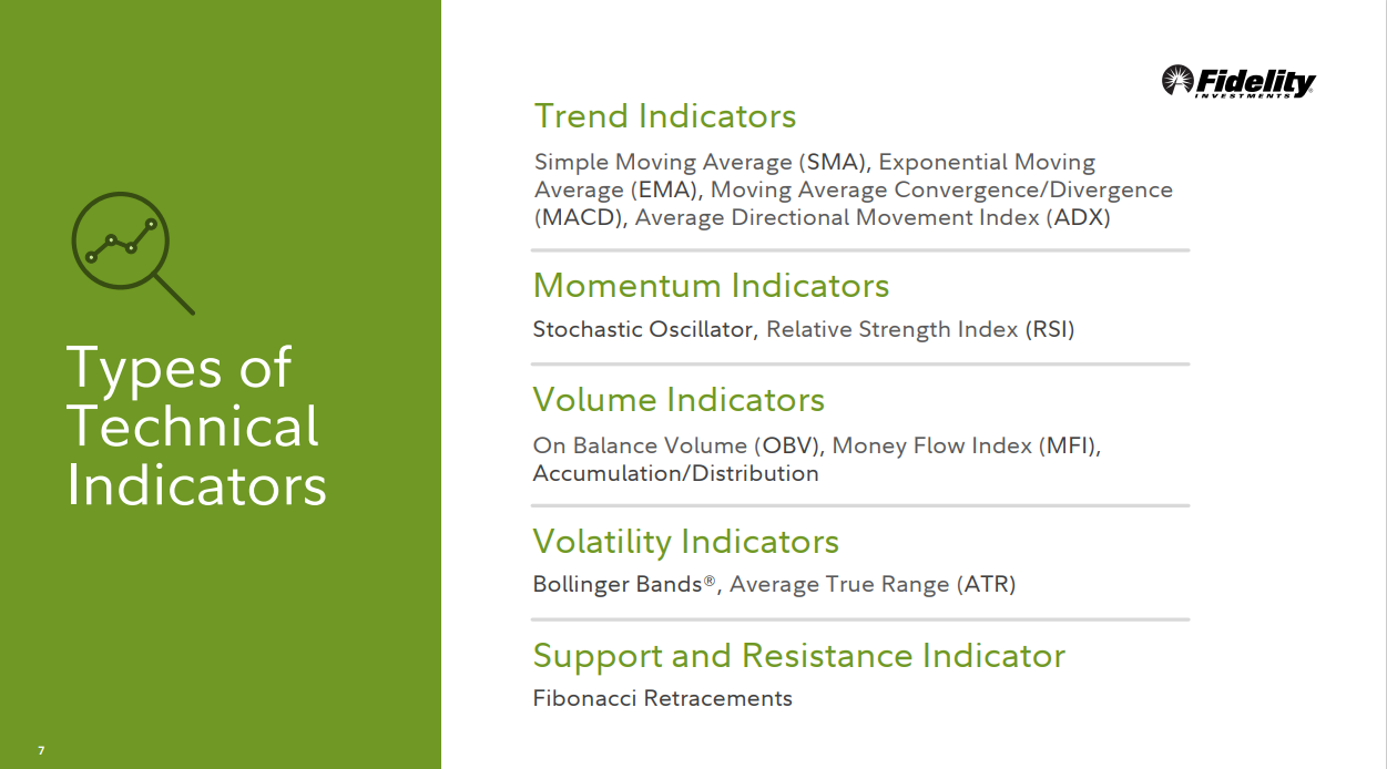 추세, 모멘텀, 볼륨 그리고 support 와 저항 같은 기술적 지표들의 여러가지 타입들을 구분해 보세요.