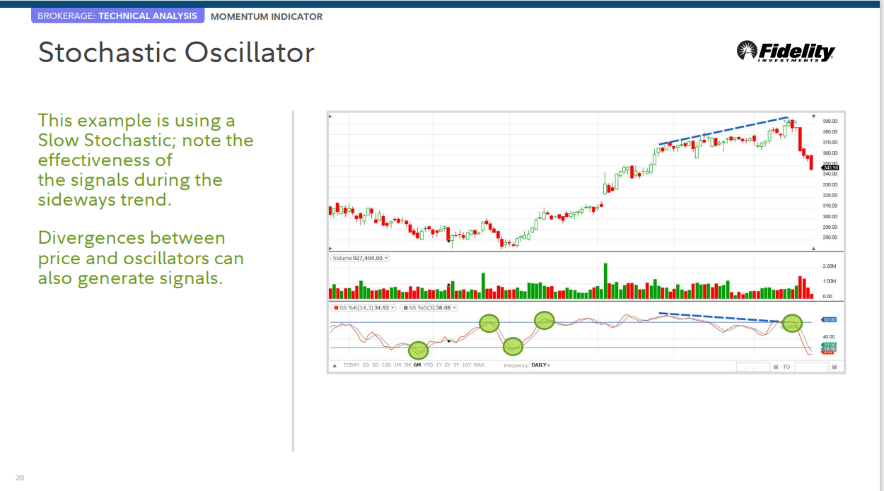 이 예는 Slow Stochastic을 사용하고 있습니다. 의 효과에 주목 횡보 추세 동안의 신호.