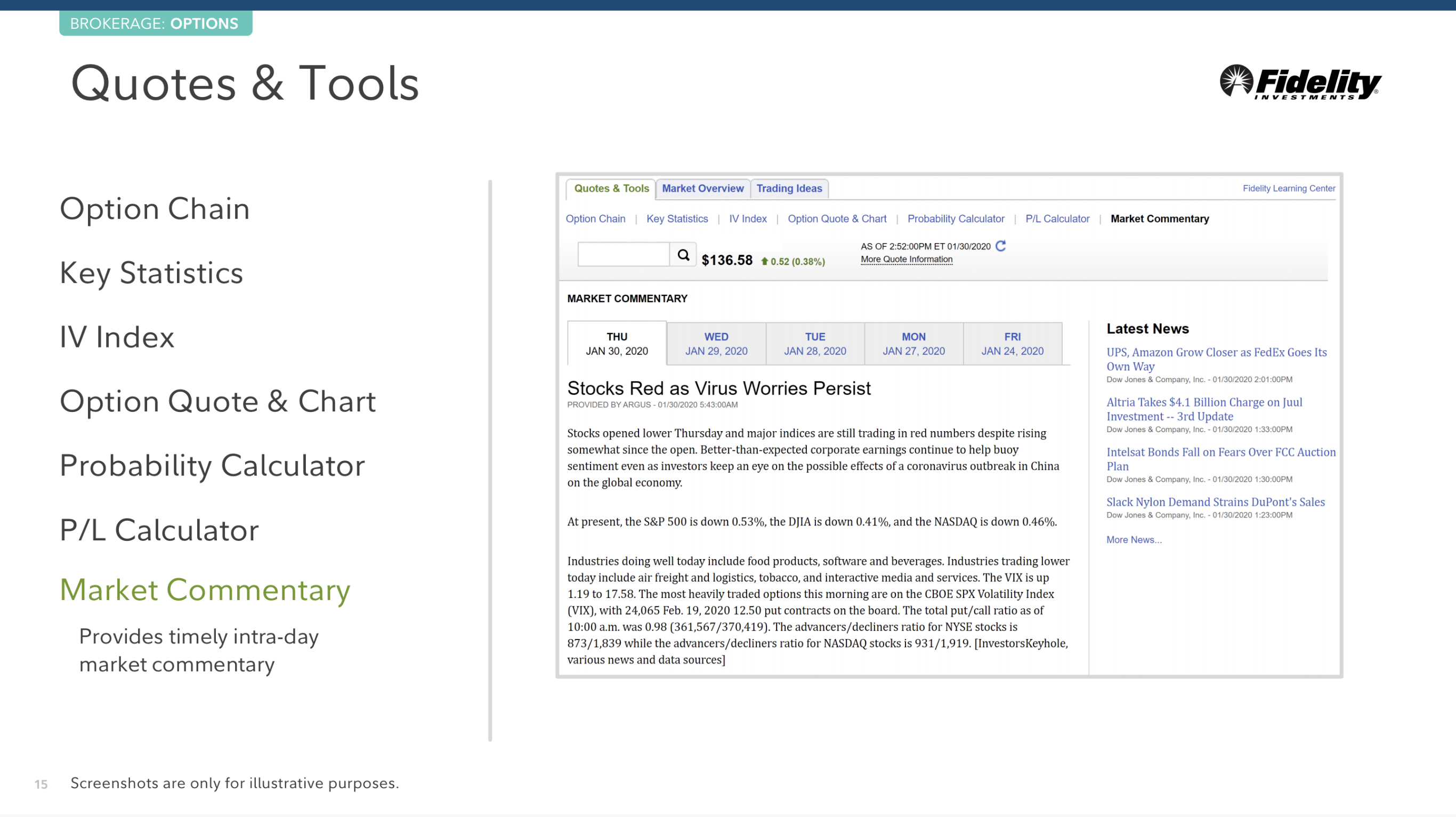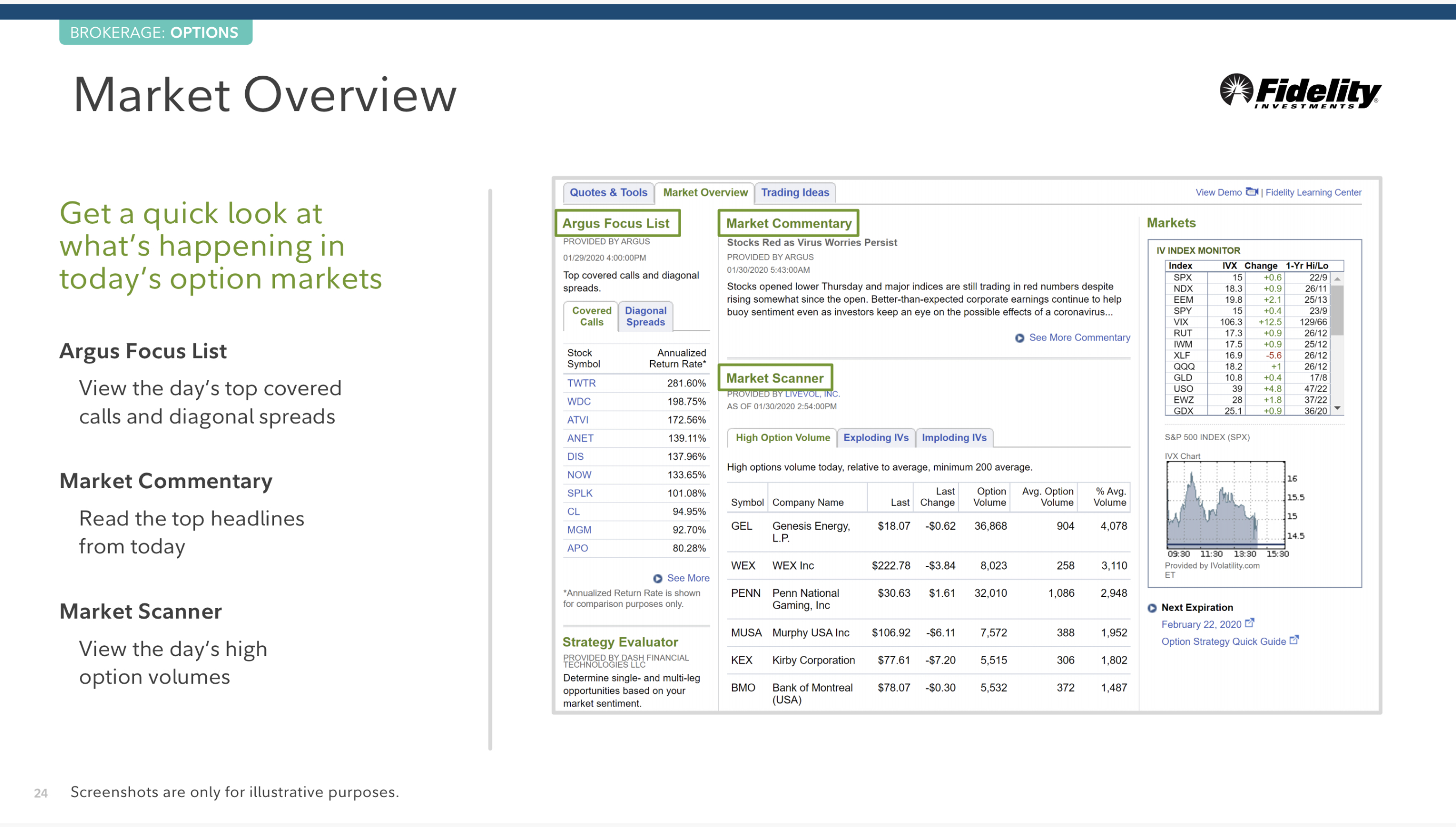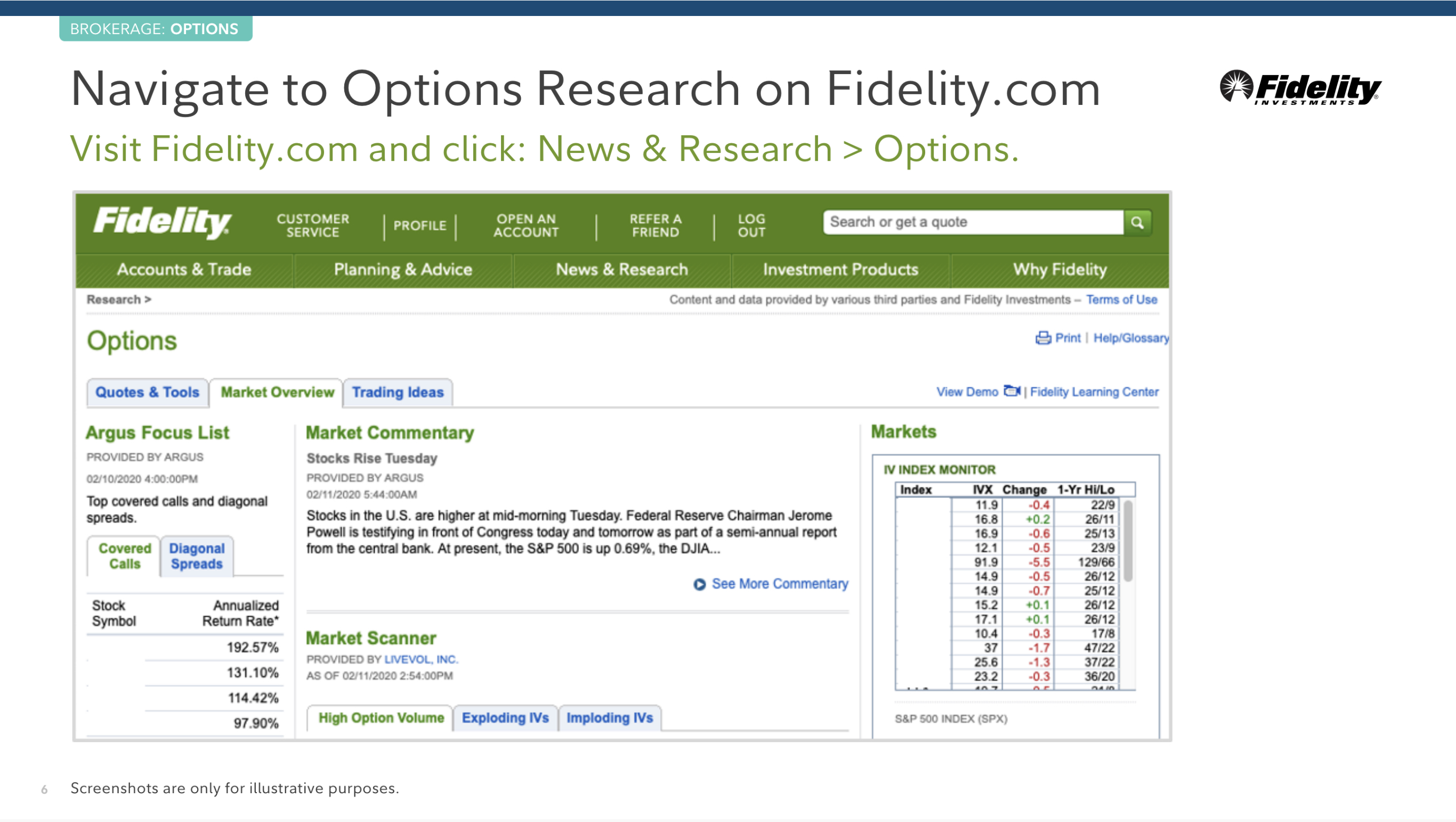 Fidelity.com으로 방문해서 News & Research > Option 을 클릭하세요.