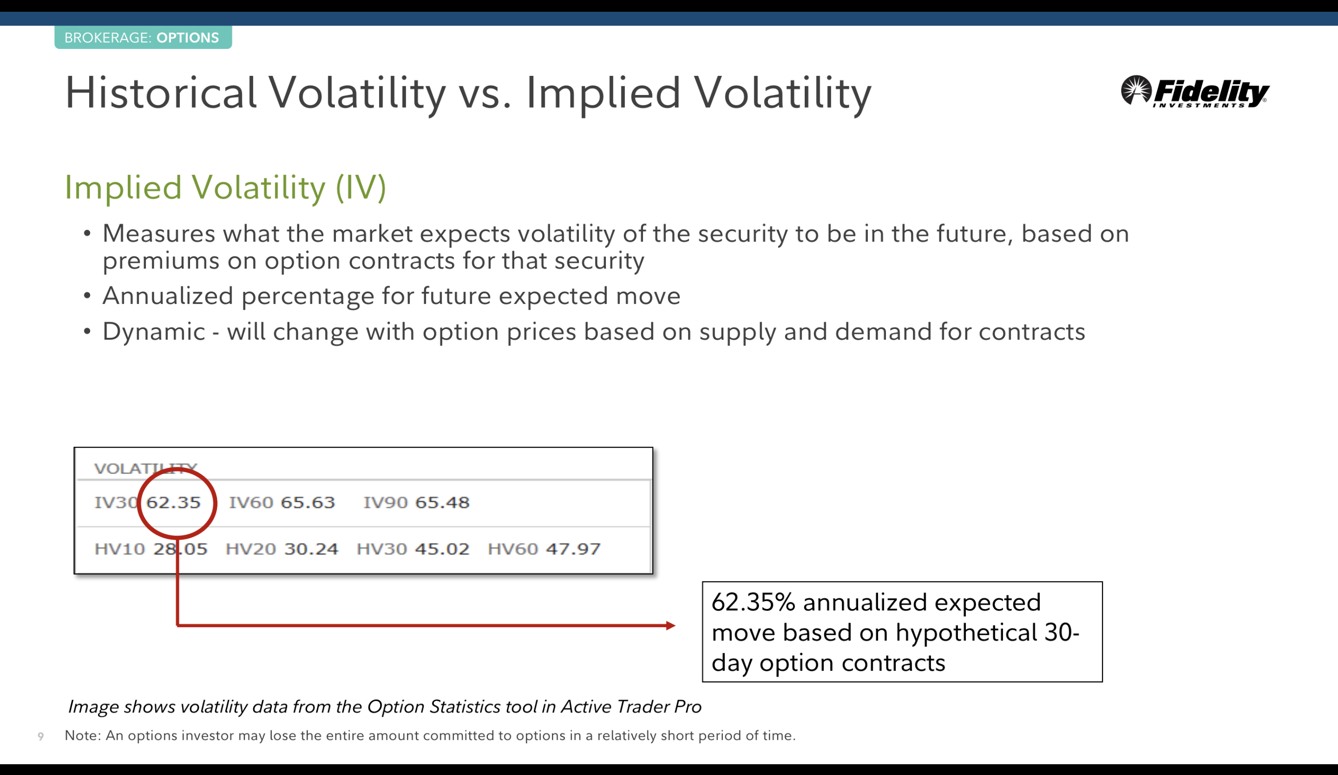 Where can you find the IV30 Percentile? A. Active Trader Pro > Options > Options Statistics B. Fidelity.com > News & Research > Options > Trading Ideas C. Active Trader Pro > Options > Option Summary D. Active Trader Pro > Accounts > Account Summary