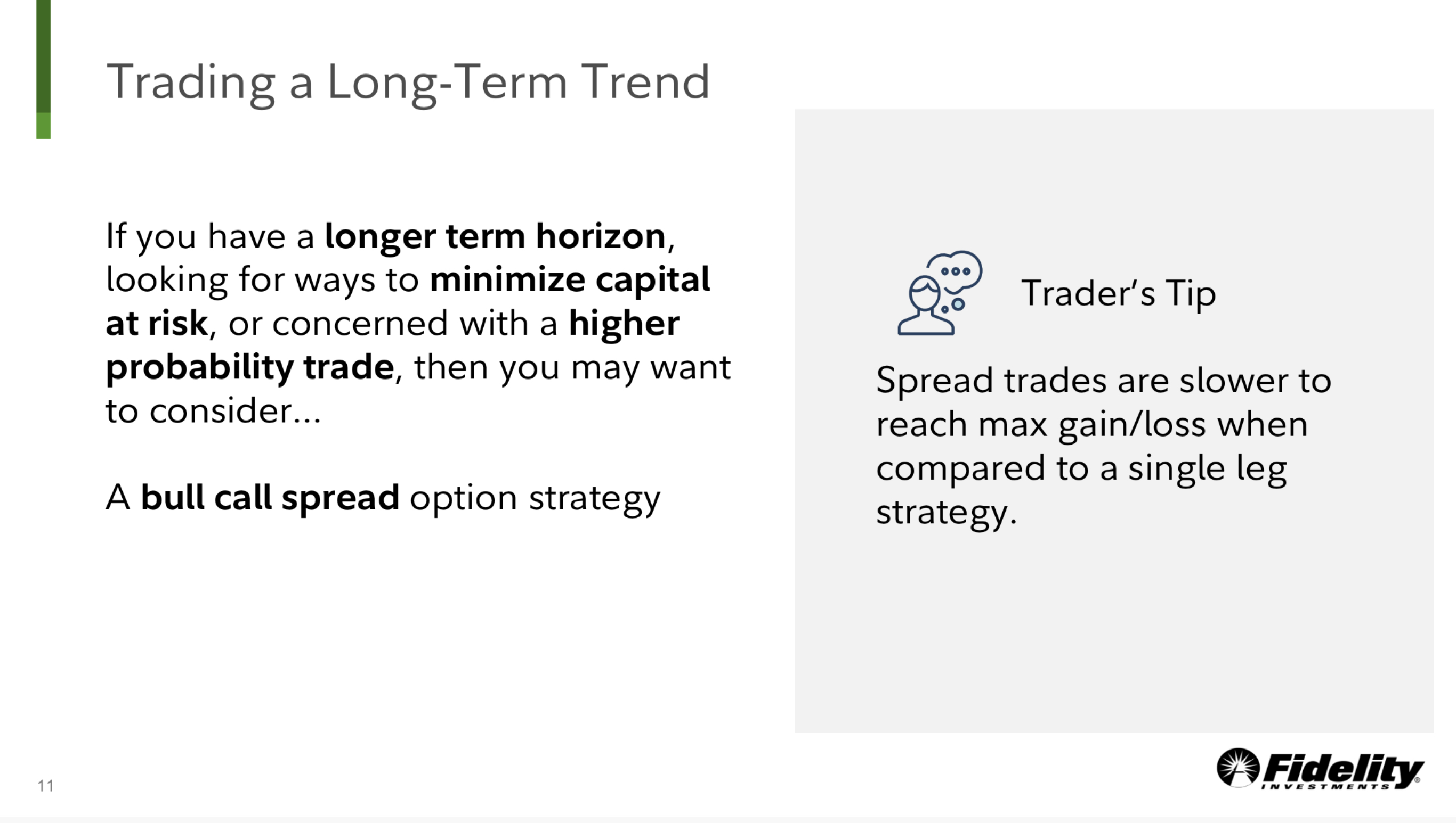 One Leg 또는 Leg Two 보다 복잡한 옵션 거래 전략(예: 스프레드)에 대한 장단점을 평가합니다.