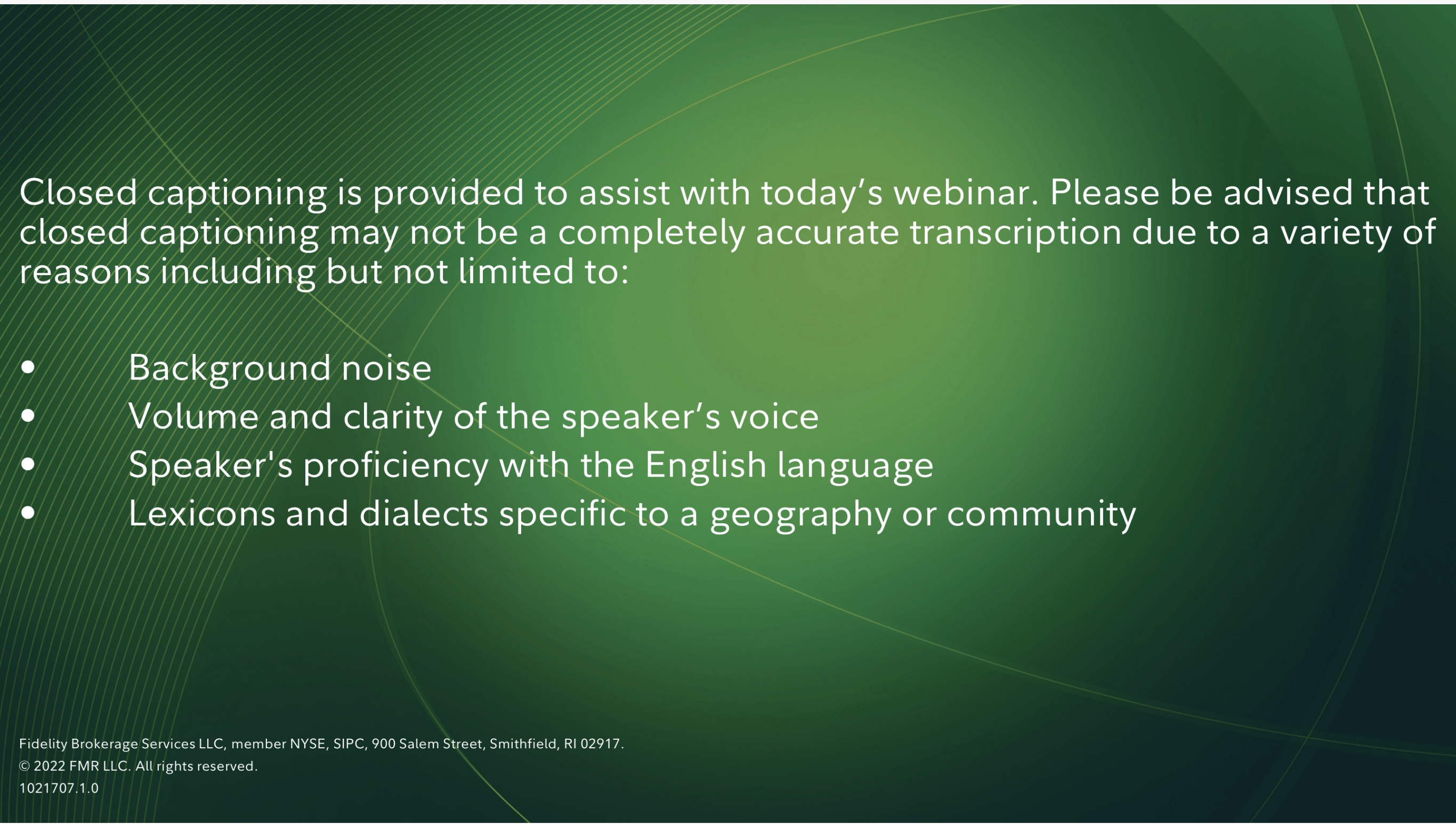 오늘 웨비나를 지원하기 위해 자막이 제공됩니다. 다음 사항에 유의하십시오. 폐쇄자막은 다양한 요인으로 인해 완벽하게 정확한 필사본이 아닐 수 있습니다. 다음을 포함하되 이에 국한되지 않는 이유: • 배경 소음 • 말하는 사람 목소리의 볼륨과 선명도 • 화자의 영어 능력 • 지리 또는 지역 사회에 특정한 어휘 및 방언