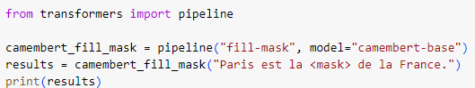 이 메타데이터는 Hugging Face Hub에 의해 구문 분석되며, 그런 다음 이 모델을 Oscar 데이터 세트에서 훈련된 MIT 라이선스를 갖춘 프랑스 모델로 식별합니다.