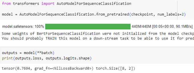 다른 체크포인트를 선택하는 경우 토큰화된 입력에 token_type_ids가 반드시 있을 필요는 없습니다(예를 들어 DistilBERT 모델을 사용하는 경우 반환되지 않습니다). 모델이 사전 학습 중에 이를 확인했기 때문에 모델이 이를 어떻게 해야 할지 알 때만 반환됩니다.