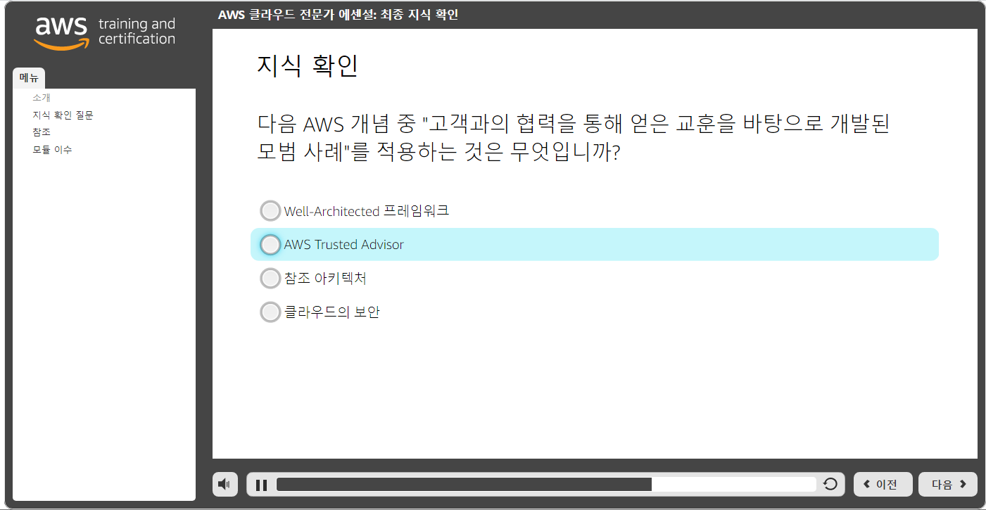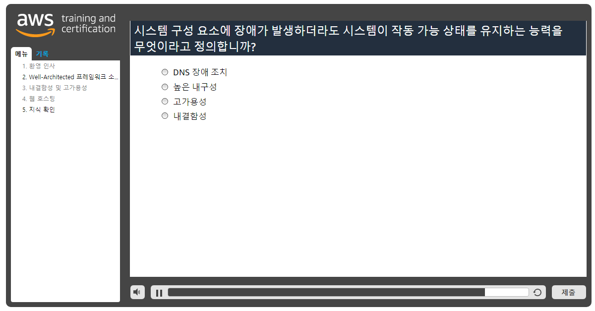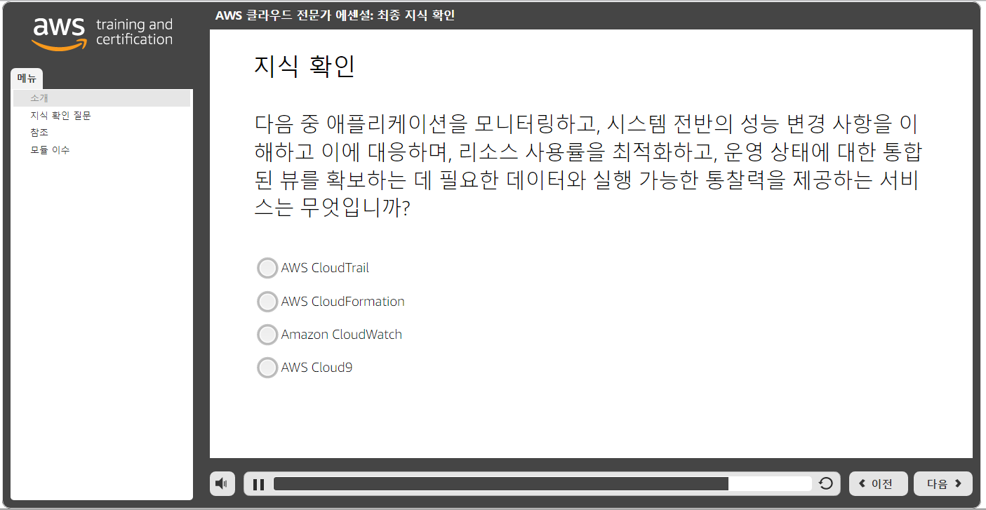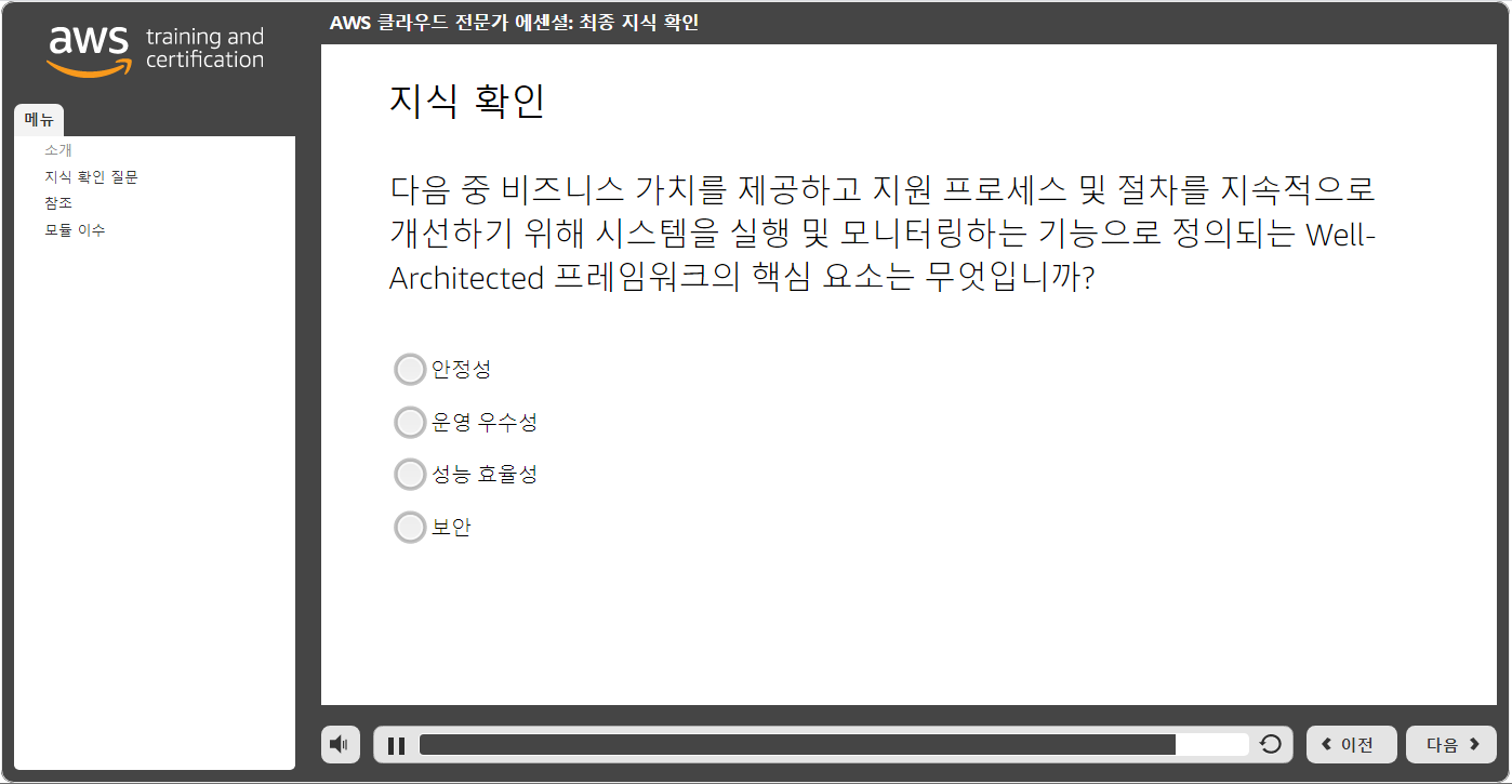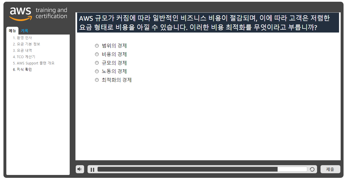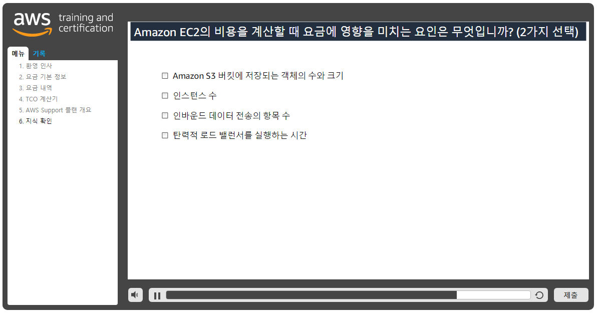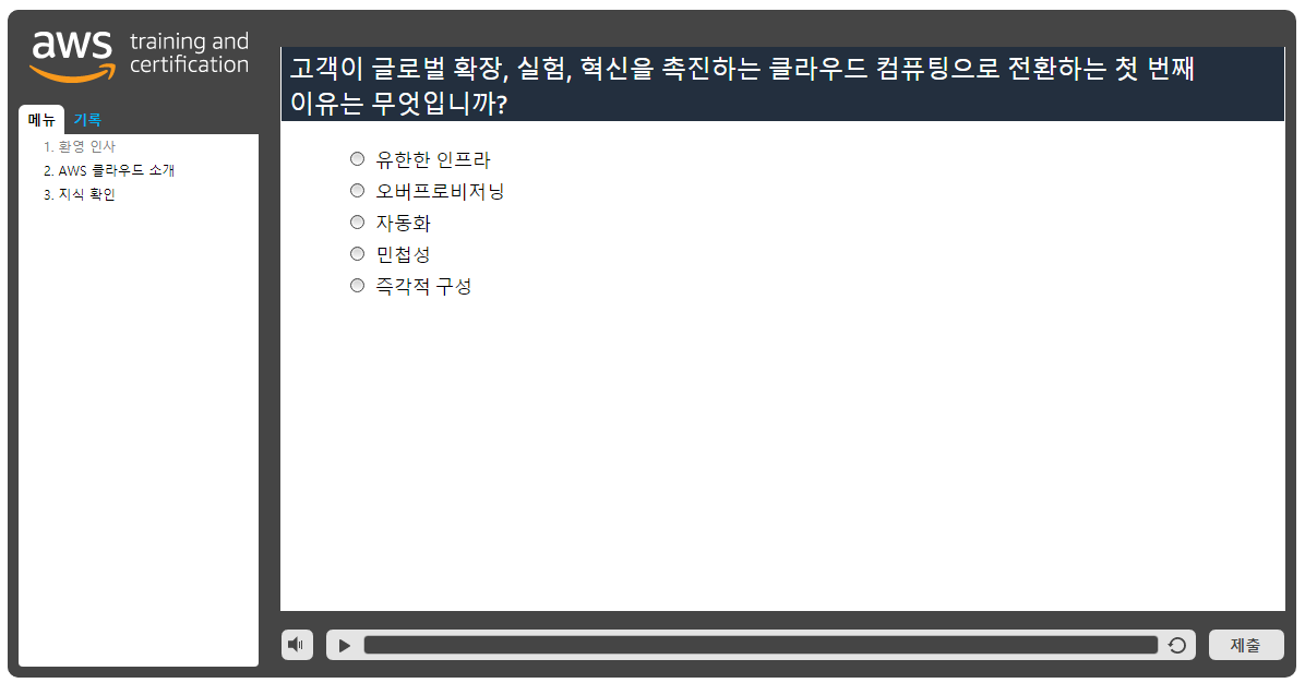 | AWS Cloud Practitioner Essentials (Digital) (Korean) - 01 (0) | 2019.12.29 |