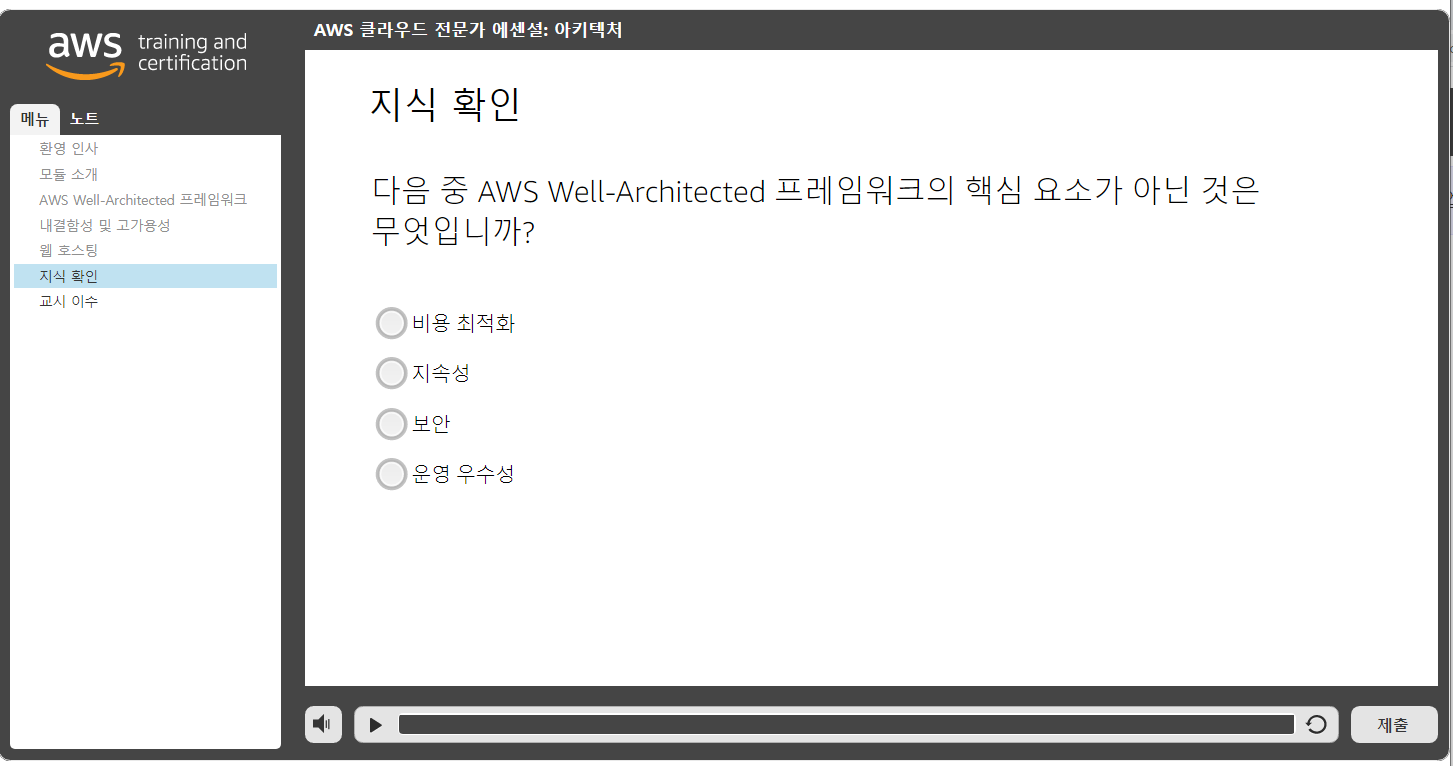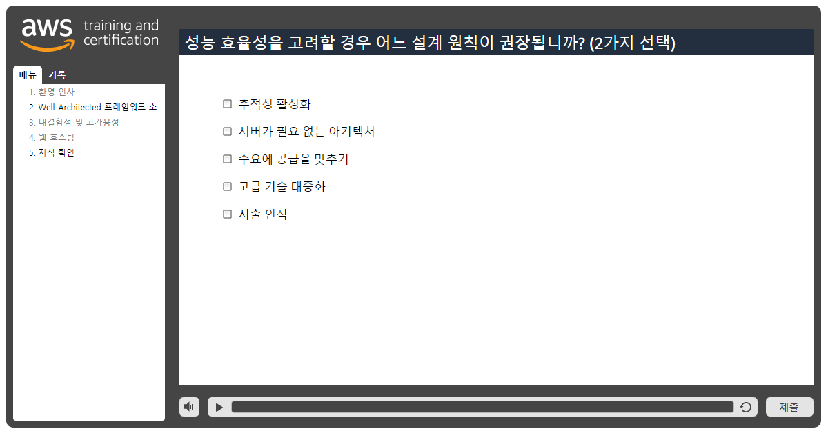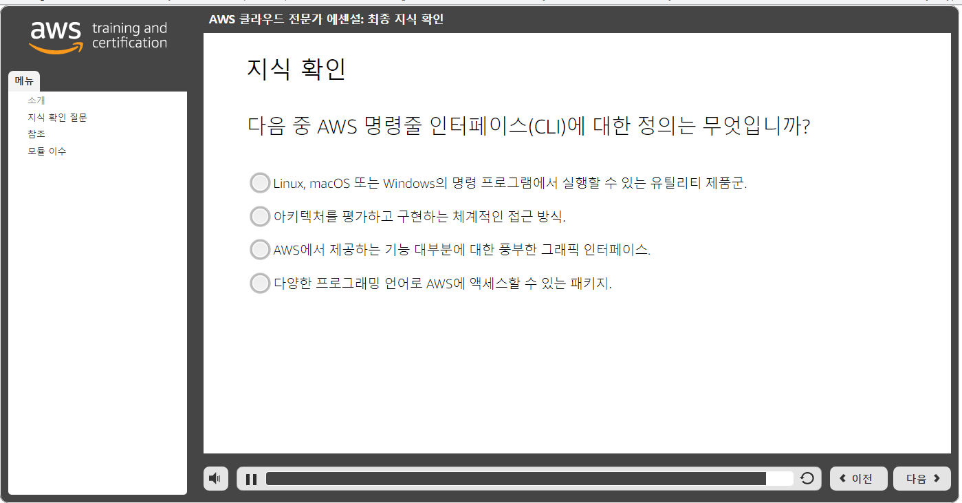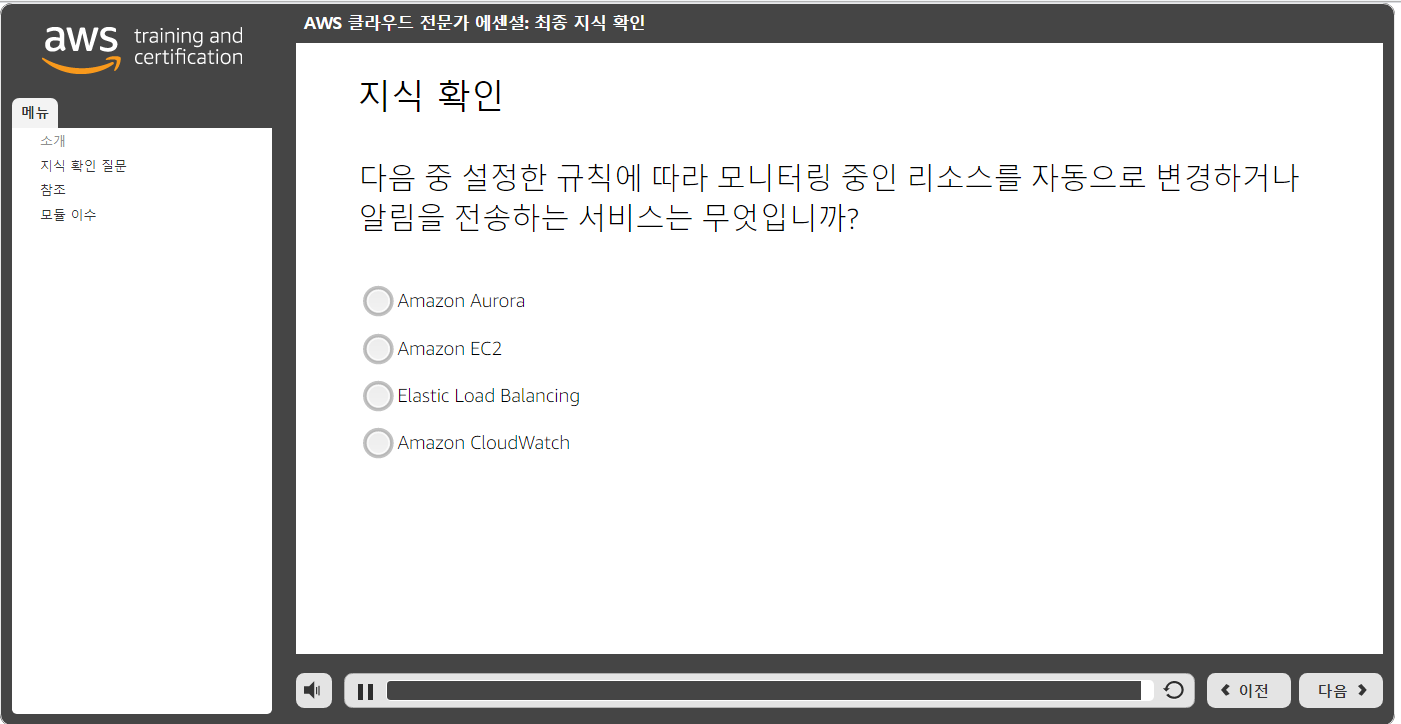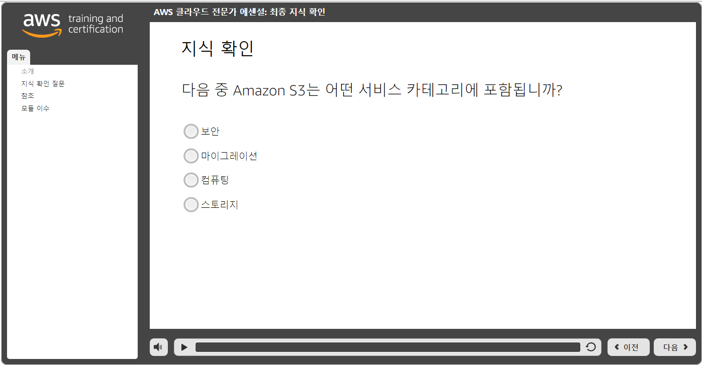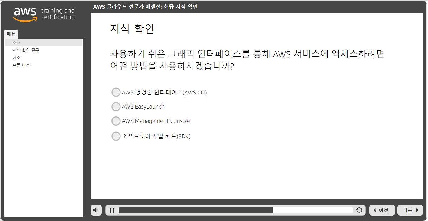 | AWS Cloud Practitioner Essentials (Digital) (Korean) - 01 (0) | 2019.12.29 |