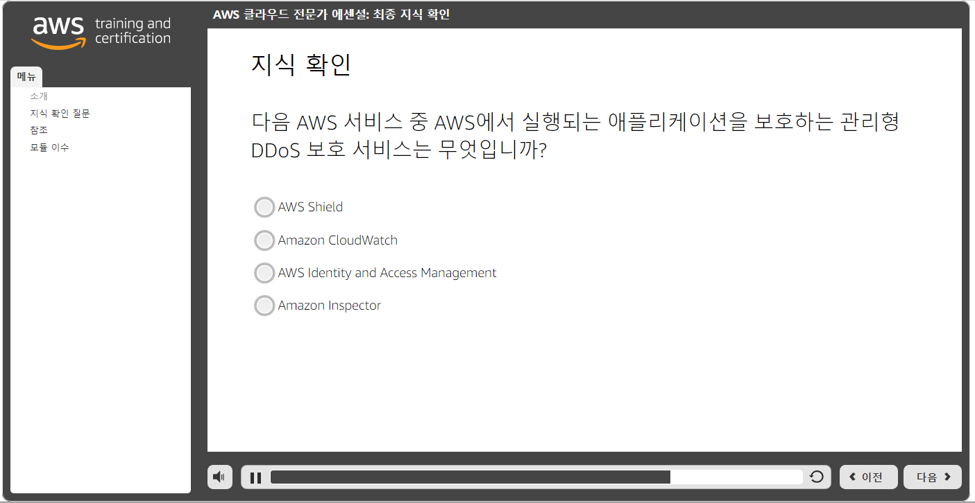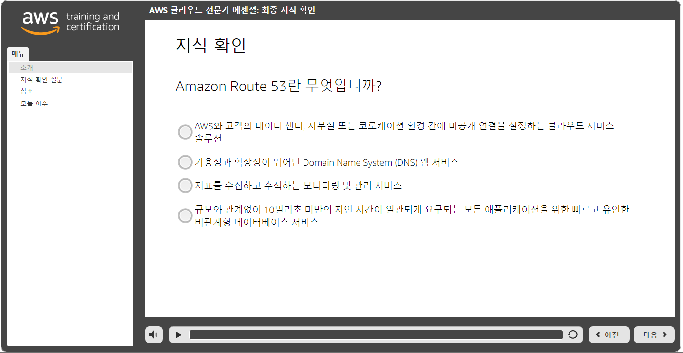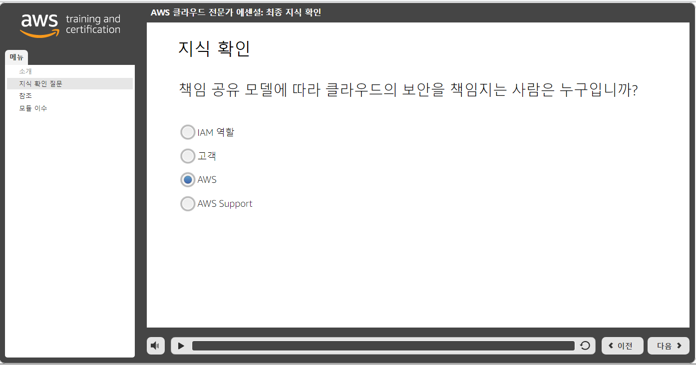 | AWS Cloud Practitioner Essentials (Digital) (Korean) - 03 (0) | 2020.01.05 |