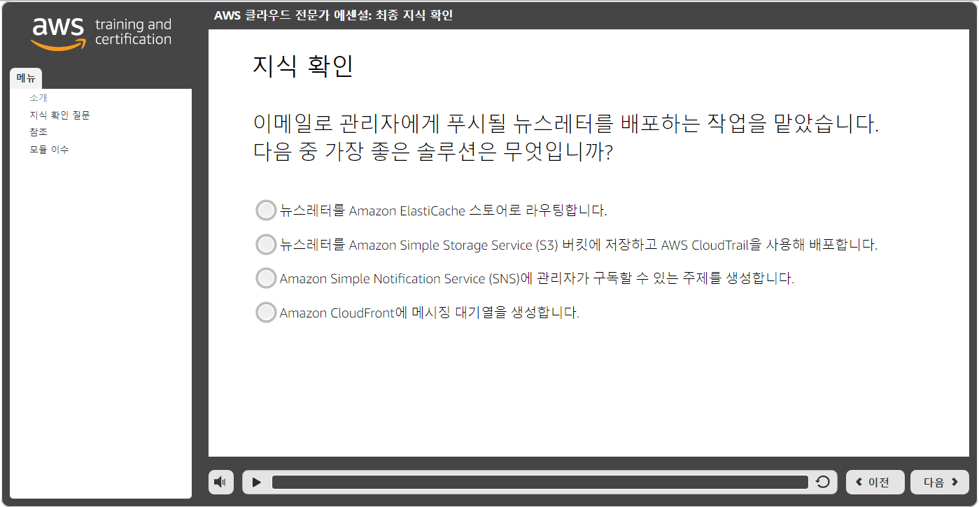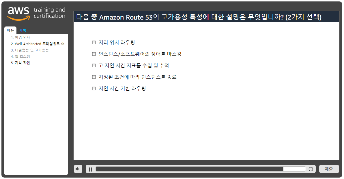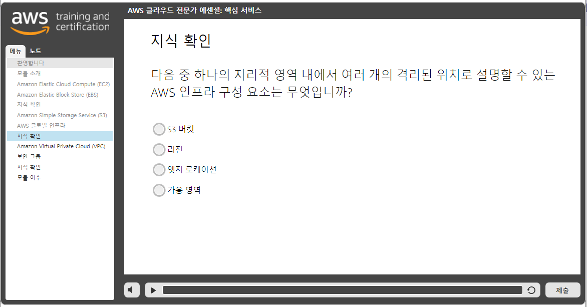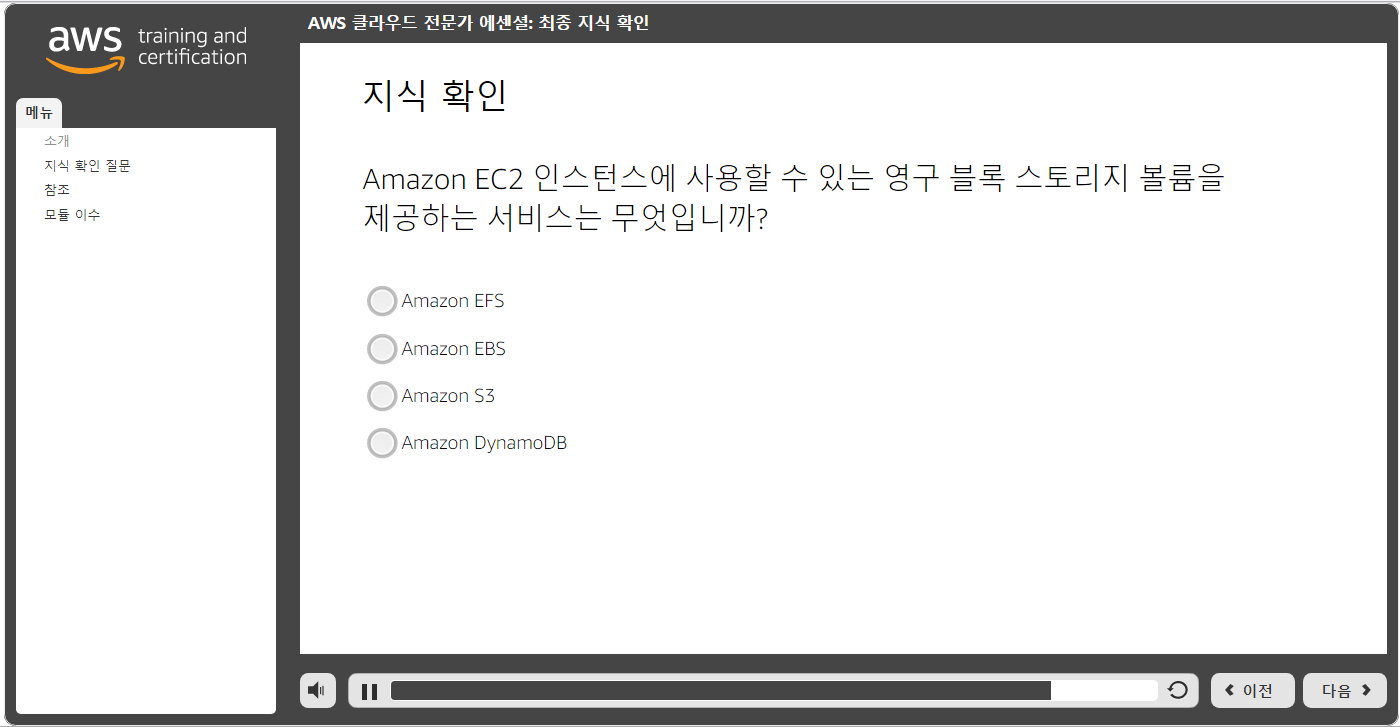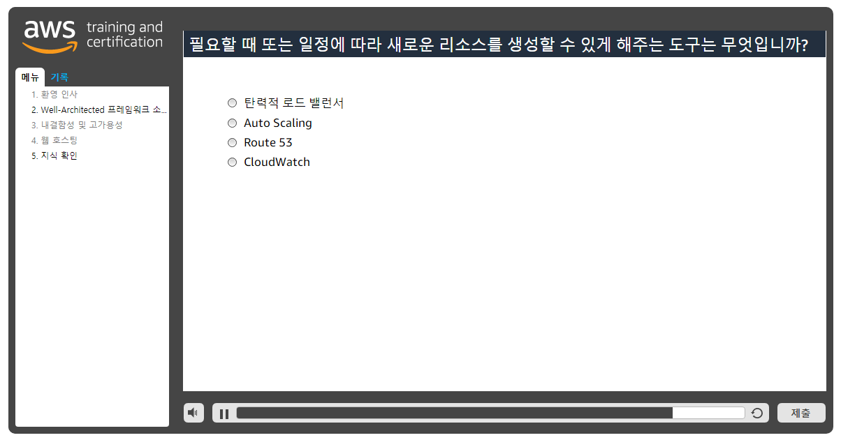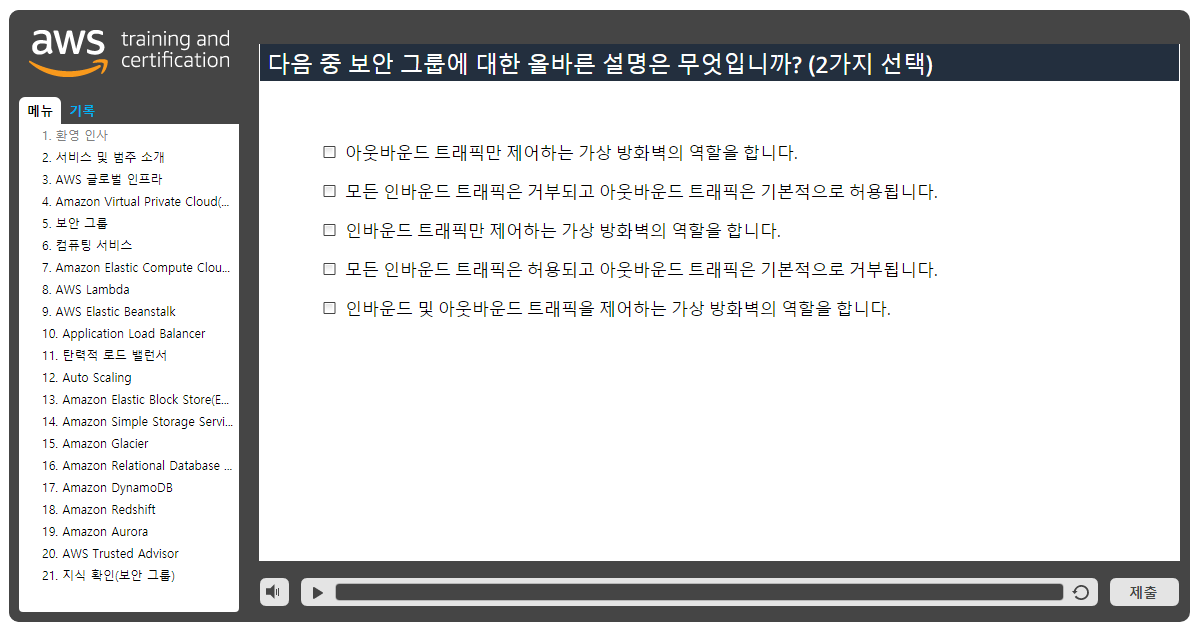 Coursera에서 제공하는 Exam Prep: AWS Certified Solutions Architect-Associate 코스를 다 끝내고 테스트 문제를 풀었다.