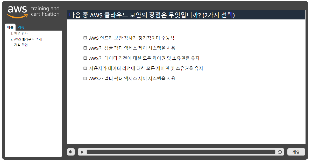 | AWS Cloud Practitioner Essentials (Digital) (Korean) - 02 (0) | 2020.01.02 |