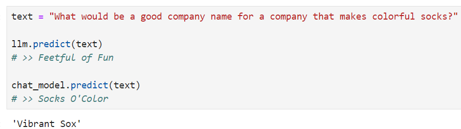이전 예에서 모델에 전달한 텍스트에는 회사 이름을 생성하는 지침이 포함되어 있습니다. 우리 애플리케이션의 경우 사용자가 모델 지침을 제공하는 것에 대해 걱정할 필요 없이 회사/제품에 대한 설명만 제공하면 좋을 것입니다.