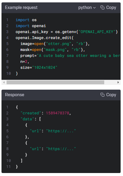 | Images - openai.Image.create(), openai.Image.create_edit(), openai.Image.create_variation() (0) | 2023.01.17 |