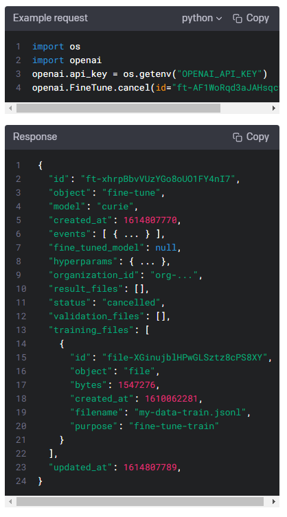 | Fine-tunes : openai.FineTune.create(), list(), retrieve(), cancel(), list_events(), delete() (0) | 2023.01.17 |