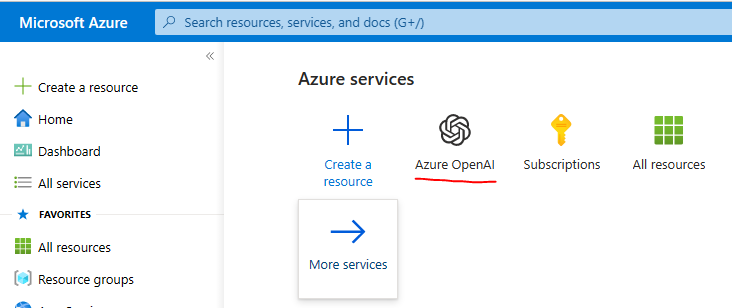 다음 섹션이 제대로 작동하려면 먼저 몇 가지를 설정해야 합니다. api_base 및 api_version부터 시작하겠습니다. api_base를 찾으려면 https://portal.azure.com으로 이동하여 리소스를 찾은 다음 "Resource Management" -> "Keys and Endpoints"에서 "Endpoint" 값을 찾습니다.