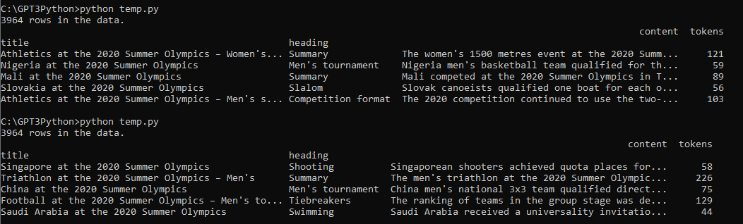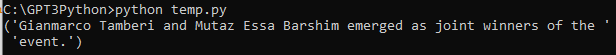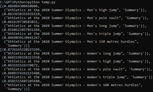ada-001은 그냥 우승자만 알려주고 끝인데 davinci-003은 그 기록까지 알려 줍니다.