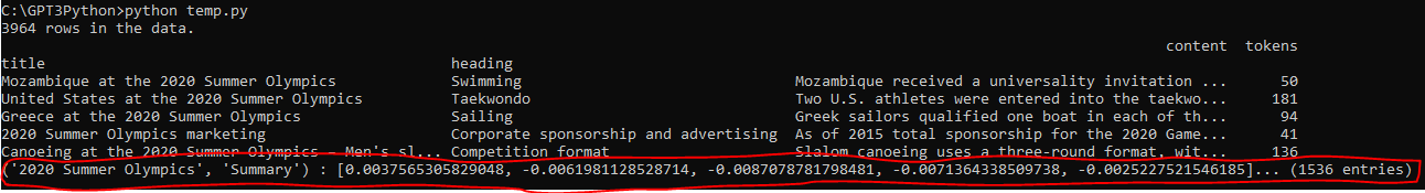 # NOTE: The following code will send a query of batch size 200 to /embeddings