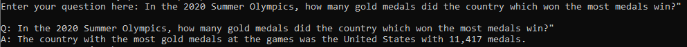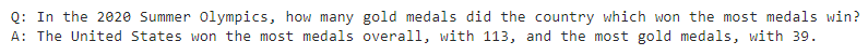 ada-001 모델은 1위 국가는 맞추었는데 메달 숫자가 11,417개라는 오답을 주었습니다.