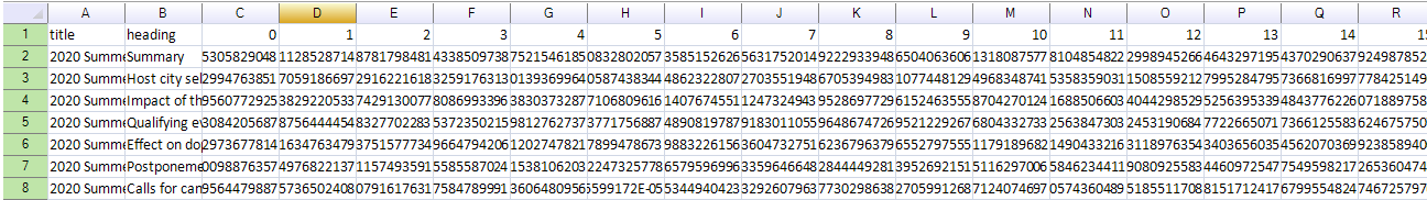 df["embedding"] = df.embedding.apply(eval).apply(np.array): DataFrame의 "embedding" 열에 대해 eval 함수를 적용하여 문자열을 Python 객체로 변환한 후, np.array 함수를 적용하여 배열로 변환합니다. 이렇게 변환된 임베딩 값들은 "embedding" 열에 저장됩니다.