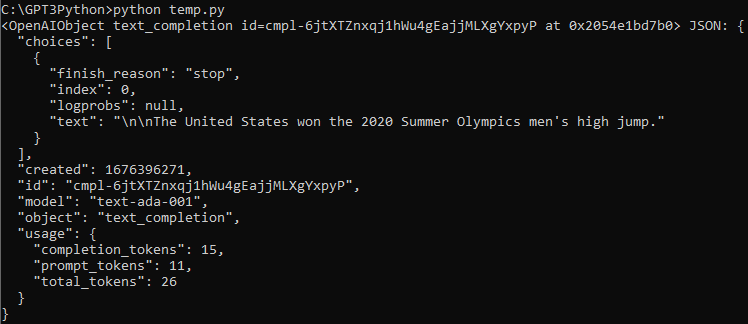 저는 ada-001 모델로 해서 이런 답을 얻었습니다.