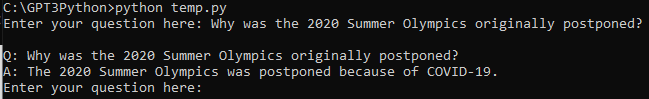저는 일일이 이 질문을 하드 코딩으로 소스코드를 수정한 다음에 다시 파이썬 파일을 실행하지 않고 사용자가 계속 질문을 입력할 수 있도록 소스 코드를 약간 고쳤습니다.