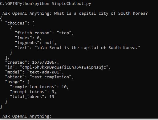 자 이러면 OpenAI 에 내 API 키를 제공했고 이 키가 유효하다면 지금부터 OpenAI API 를 사용할 수 있습니다.