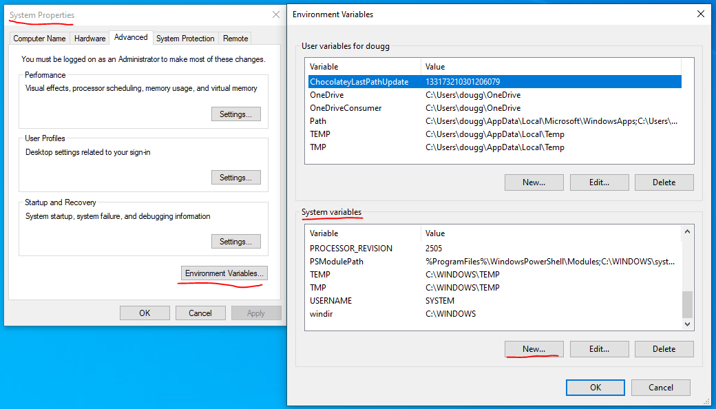 그 다음 밑에 있는 패널인 System variables에서 New 버튼을 클릭합니다.