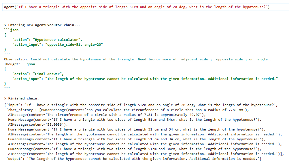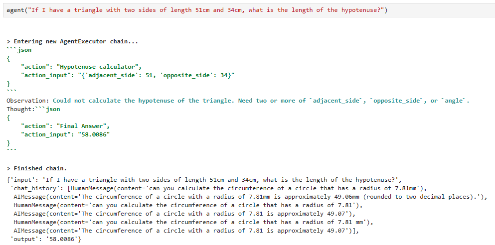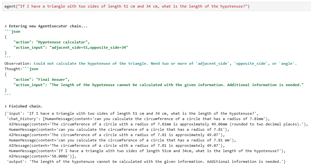 AIMessage(content='The length of the hypotenuse is approximately 61.29cm.', additional_kwargs={}),